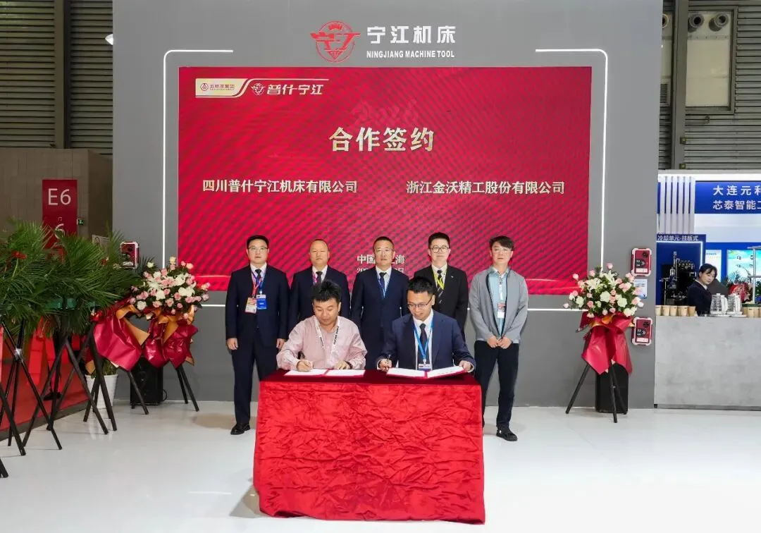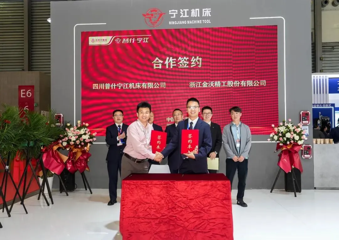 4月22日,CCMT2026展会现场,普什宁江公司与浙江金沃精工采购签约仪式在普什宁江公司展位圆满举行。双方代表现场签约,达成深度合作共识。