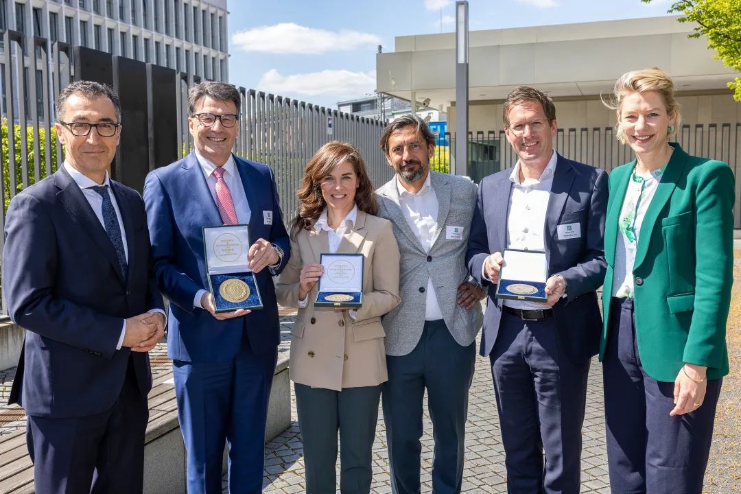 近日,德国联邦食品及农业部(BMEL)向德国食品行业的24家顶级企业颁发了德国联邦荣誉奖,来自烘焙、肉类及果蔬和马铃薯加工领域的生产商受到了表彰,德国联邦食品及农业部部长 Cem Özdemir 先生(左一)与德国农业协会(DLG)首席执行官 Freya von Czettritz 女士(右一)一起在柏林为获奖者颁发了证书和奖章。