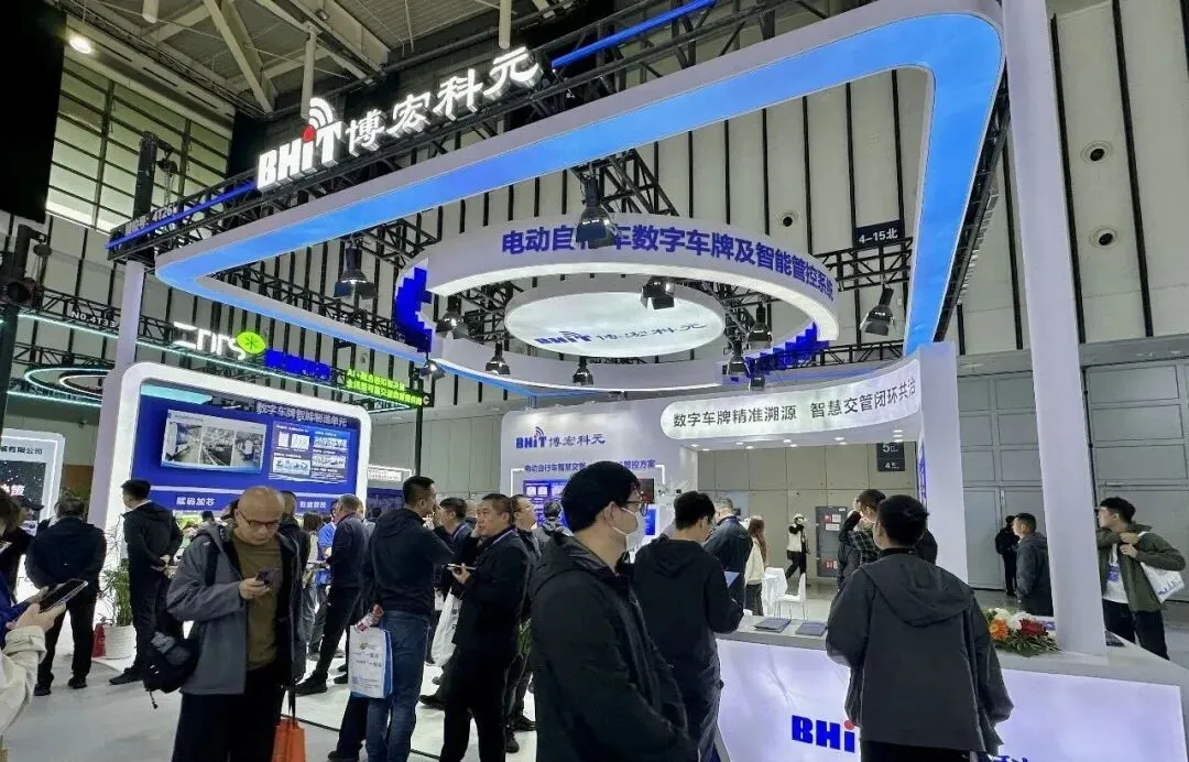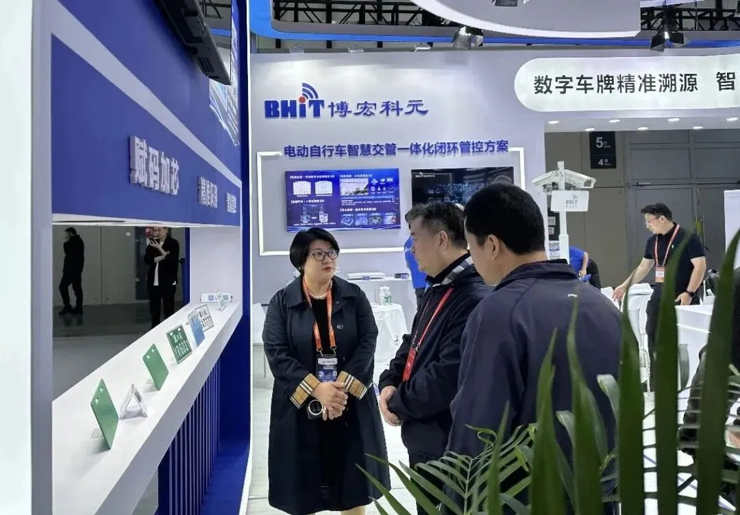 博宏科元展出“电动自行车数字车牌及智能管控系统”涵盖数字车牌智能制造、路面智慧执法、智慧社区安全防控、交警智能警务装备四大板块,完整呈现了从号牌生产到闭环处置的全流程管理能力,开展首日便吸引众多各地交管部门代表与行业伙伴驻足交流,获得广泛关注。