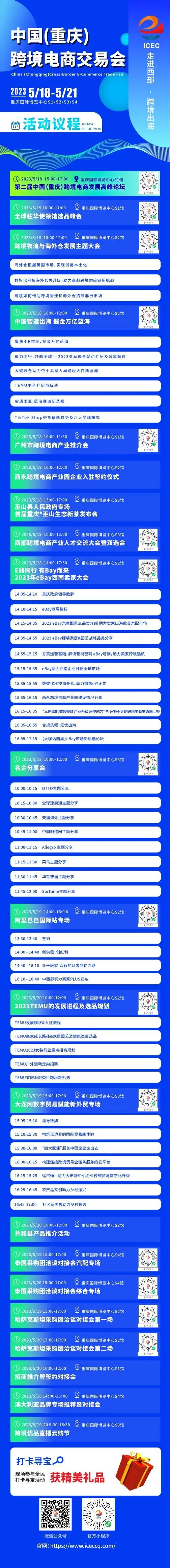 展会概况:2023年中国(重庆)跨境电商交易会是西洽会中由中国商务部外贸发展局、重庆市商务委员会共同主办的专业性展会,本次ICEC中国(重庆)跨境电商交易会是西部地区规模最大、汇聚了西部全产业带、涵盖全产业链的专业跨境电商交易会。届时有1000+品牌亮相展会现场,将吸引国内采购团及卖家,国外20多个国家驻华商领事馆买家团亲临现场采购,将邀请200+领军人物聚焦跨境产业转型发展机遇、共同推动产业的多维度发展。现场将举行国家级跨境电商论坛和多样主题专场,打造中国跨境电商行业盛会。