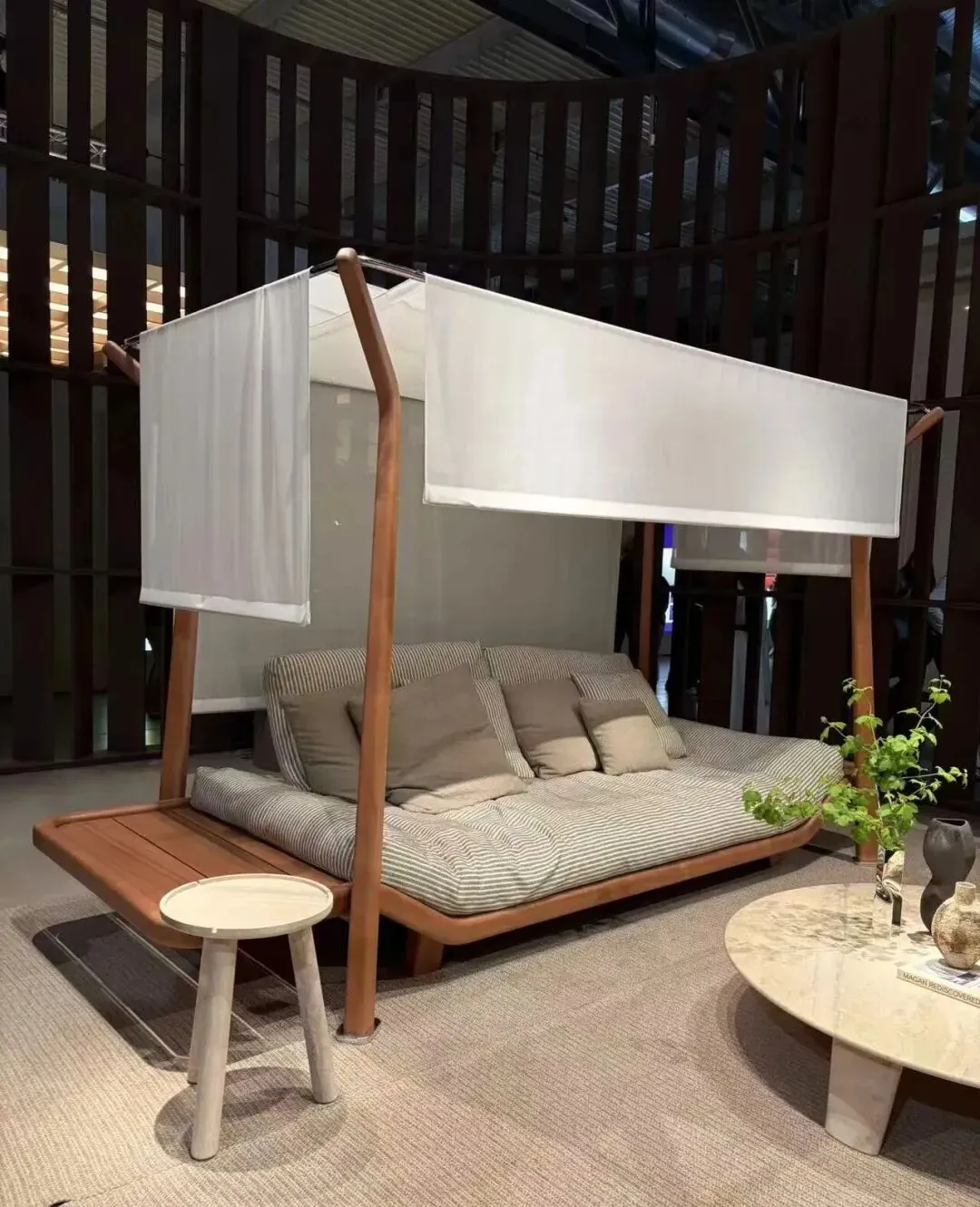 Manutti 2002 年创立于比利时,专注高端户外家具,以极简自然设计、东方禅意美学、顶级材质与精湛手工工艺为核心。2026 米兰家具展上,品牌延续有机线条与大地色系,融合可持续柚木、再生铝与环保织物,打造兼具雕塑感、极致舒适与永恒奢华的户外家居,重新定义户外奢居体验。