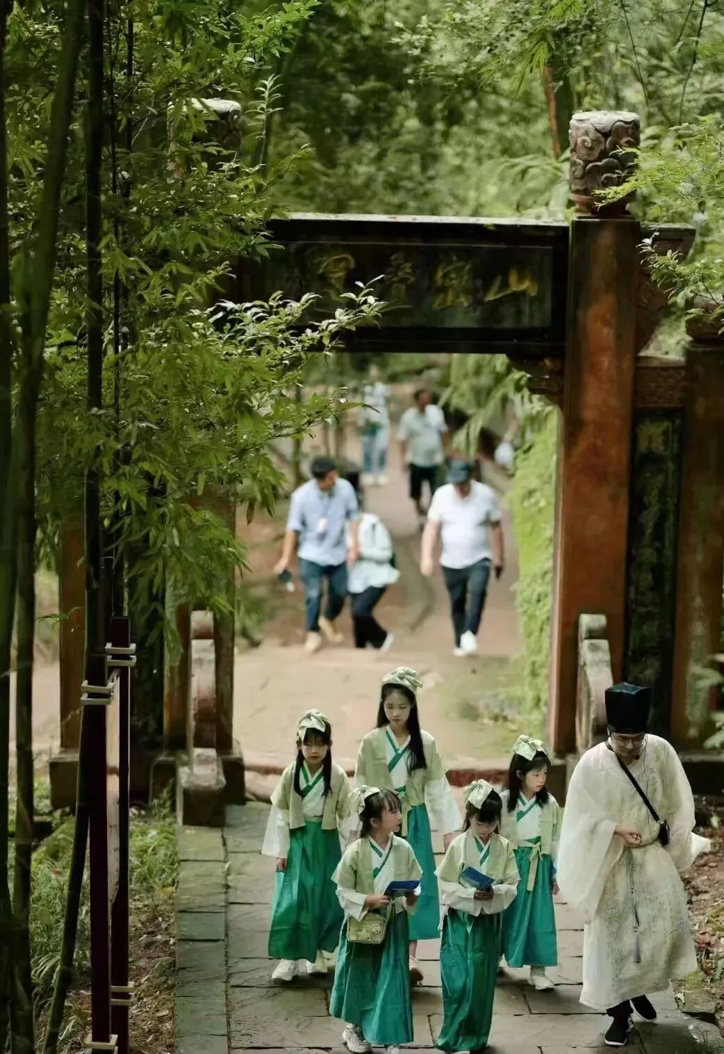 游大雅文化旅游景区,登大雅堂颂诗词,体验传统诗书礼仪,领略大雅遗风,参观彭端淑家风馆,传承和学习优良家风。