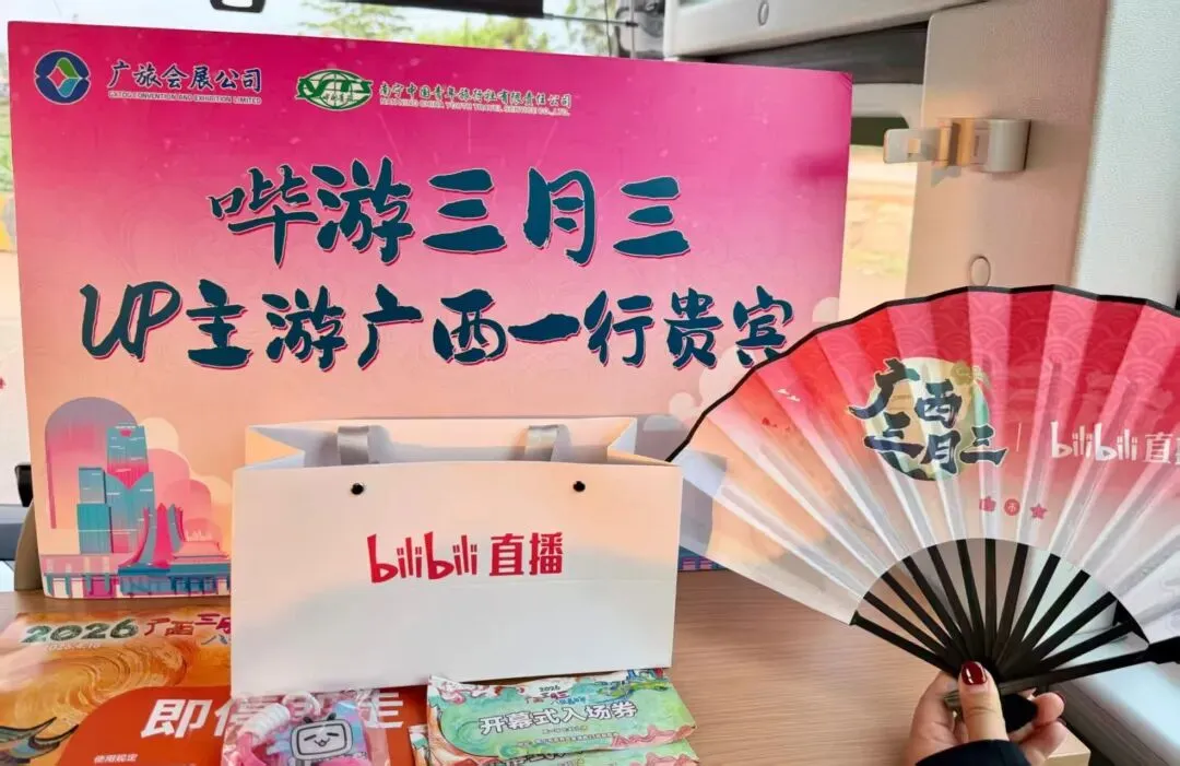 “广西三月三”期间,广旅会展公司抓住年轻化、网络化的文旅新趋势,以“哔游三月三 UP主游广西”为主题,协同南宁中青旅为B站多位知名流量UP主量身定制“三月三游广西”专属线路。从行程规划、交通食宿到拍摄协助、文化讲解,提供一站式管家服务,深度挖掘广西民族文化、山水风光与网红打卡点,定制兼具趣味性、文化性与传播性的特色行程,助力UP主们产出优质内容。