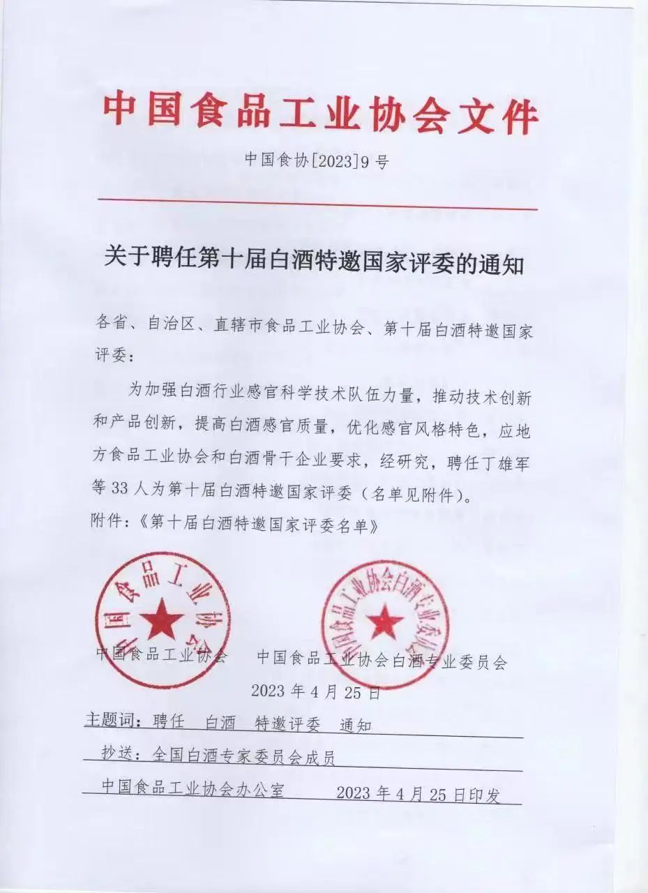 国家级白酒评委是中国酿酒工业的佼佼者,他们是分布在各大酒企、酒类管理机构、科研机构,长期从事酒类加工和科研工作的专业技术人员,拥有着非常丰富的专业经验和对味道、口感无与伦比的敏感度;是中国食品工业协会每5年进行一次国评选聘,通过十分严苛的层层选拔和专业正规考试与评定,选出的可以把控市场流通白酒产品质量和风格的专家级人才。而特邀国家评委,则是虽不在原本评选编制范围之内,但由于其精湛的专业技术能力和超高的行业影响力而特别邀请的领域权威。