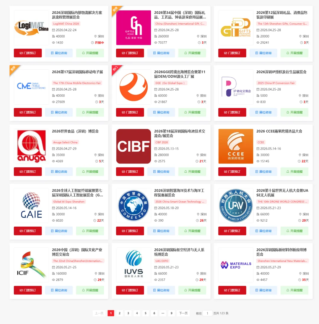 5月深圳将举办多场重要的展会,涵盖了物流、包装、消费电子、礼品、跨境电商、品牌授权、食品、新材料、电池、人工智能、跨境电商、船舶、低空经济、文化、无人机、粉末冶金、电机、家具、汽车、面料、新材料、空气净化、电子、工业、半导体、光电激光、家电、工业、机器人、涂料、新材料、密封剂、新材料、跨境电商;展等;以下是5月深圳展会排期最新一览表。文中获取深圳展会门票预约入口~(大部分限时免费)