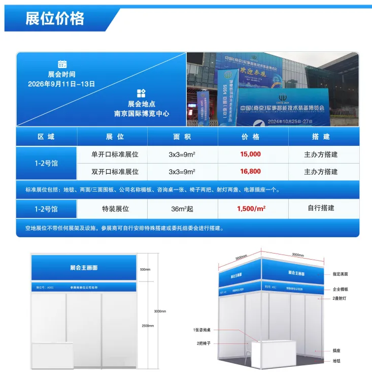 席位有限,先订先得,核心展区优先安排军工央企与头部民参军企业!