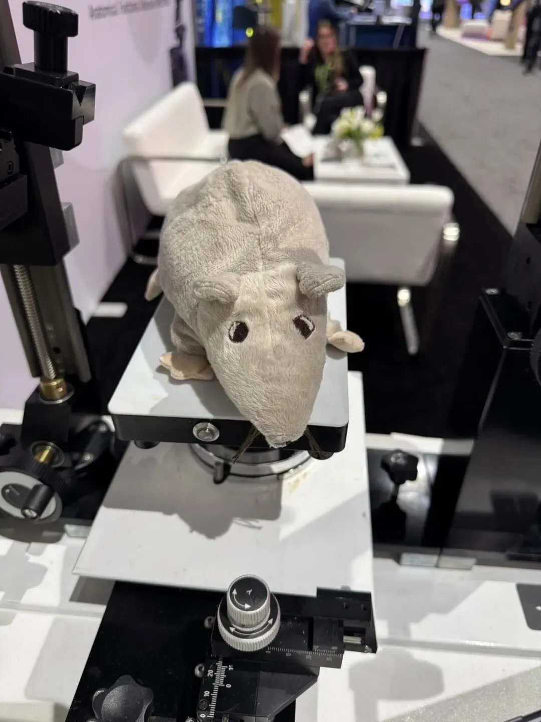 昨天在一个做仪器的站台看见两只长相特别搞笑的毛绒玩具大鼠模型。展台小姐姐说,这俩货在公司的时间比她还长,元老级鼠模。