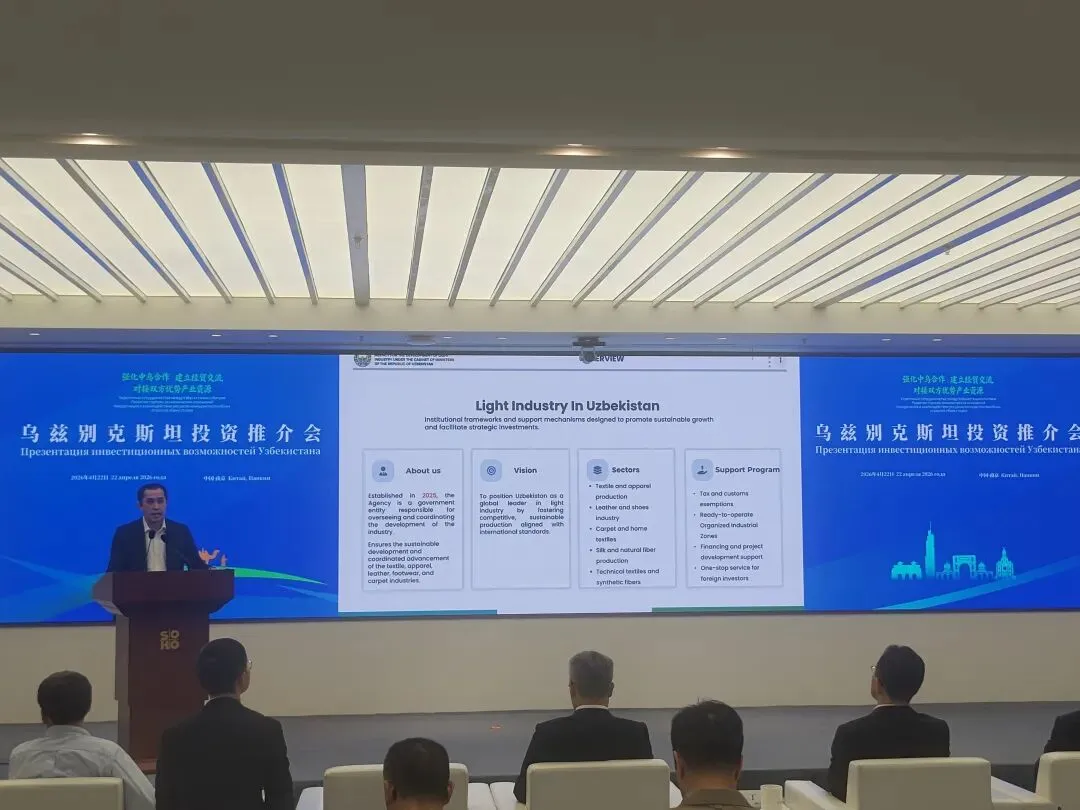 推介会上,乌兹别克斯坦轻工业发展署副署长详细介绍了乌兹别克斯坦的轻工业发展现状、政策导向以及未来规划。他指出,乌兹别克斯坦拥有约3600万充满活力的人口,且人口结构偏年轻化,劳动力资源丰富且素质不断提升。政府高度重视轻工业发展,出台了一系列优惠政策,鼓励外国企业投资兴业。特别是在纺织、皮革加工、食品加工等领域,依托庞大且年轻的消费群体以及不断增长的国内市场需求,乌兹别克斯坦具有巨大的发展潜力和广阔的合作空间。