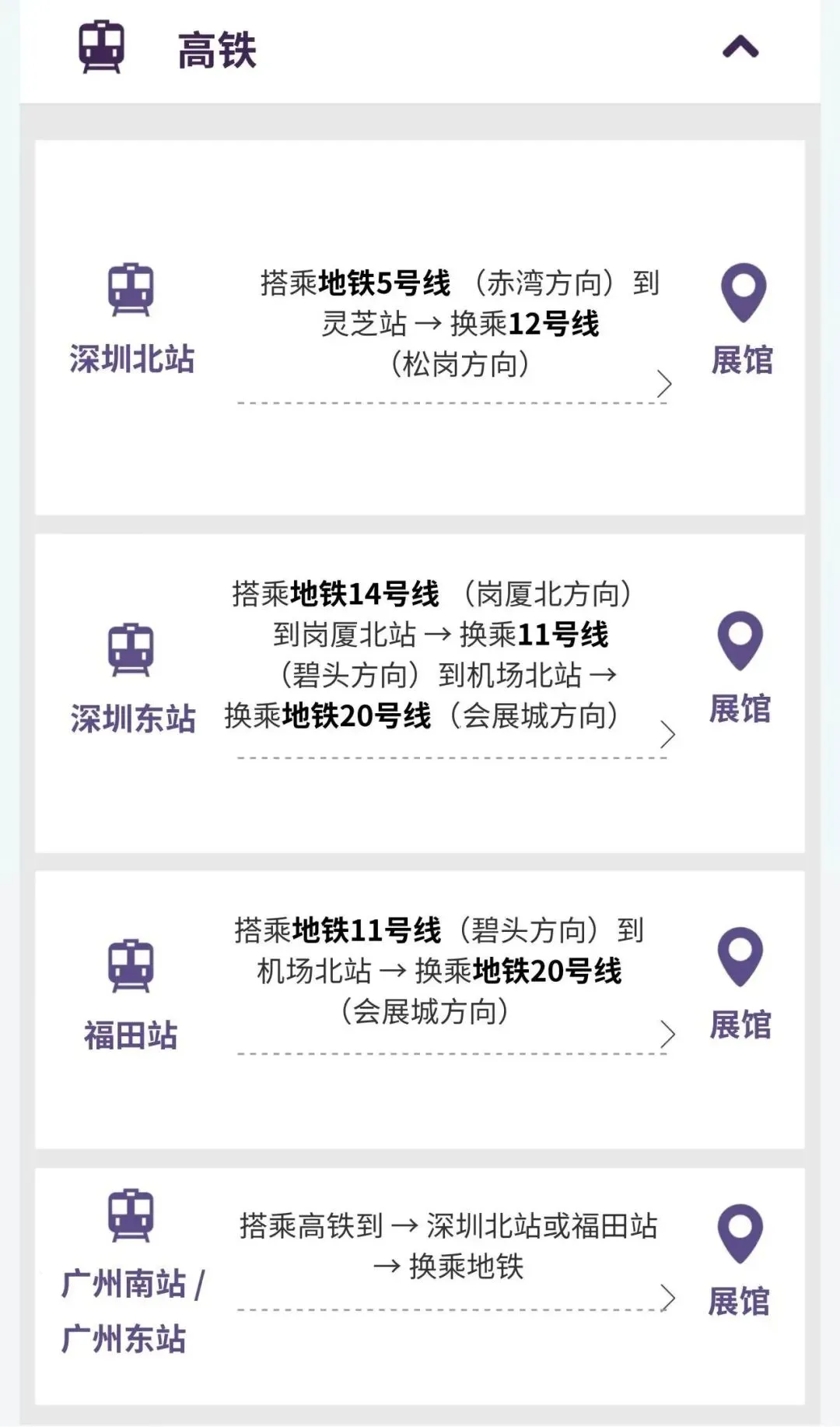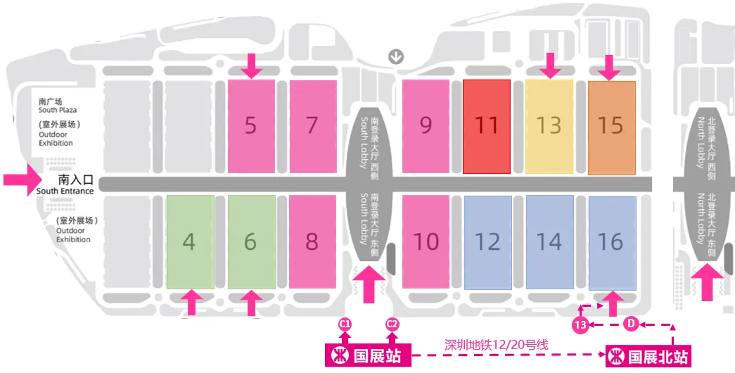 抵达深圳宝安国际机场后,您可以搭乘网约车/出租车,或者地铁12号线、20号线直达展馆南、北登录大厅。(具体请参考上方地铁部分)
