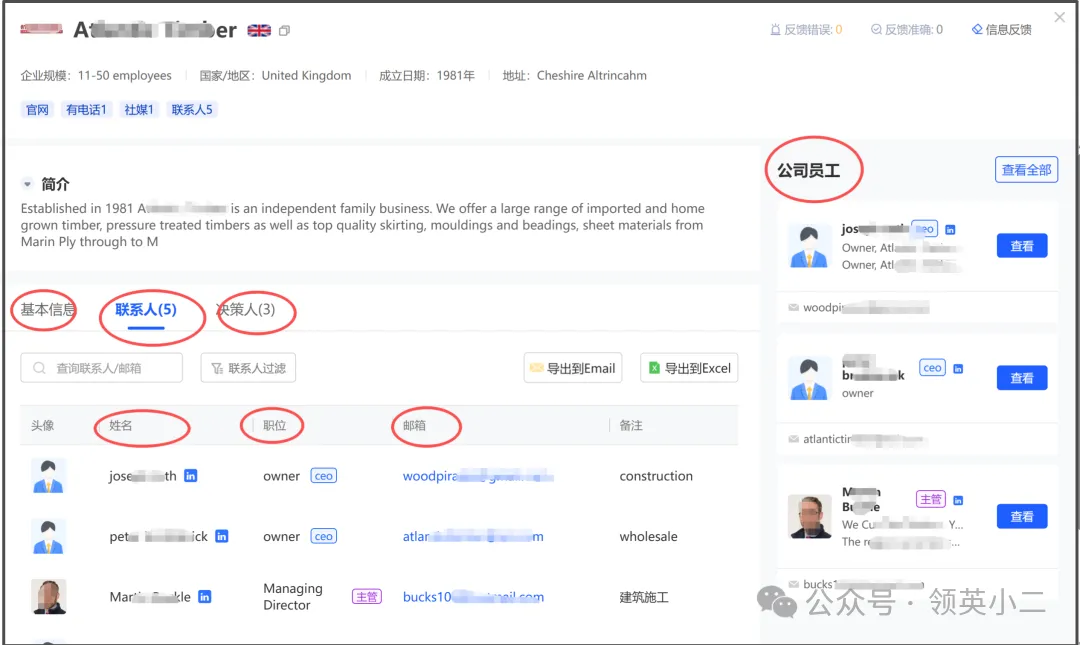 • 精准匹配决策人(CEO / 采购 / Owner)