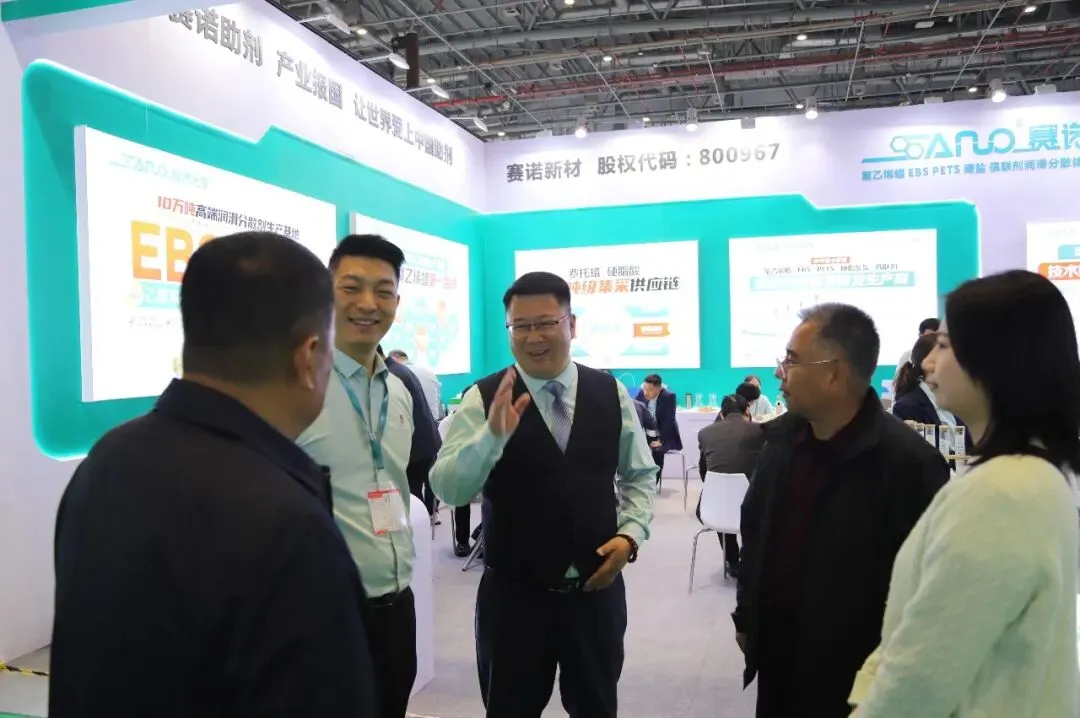 赛诺化学推出的EBS、PETS高端耐温润滑分散助剂,则成为高端橡塑加工领域的“明星产品”。依托年产6万吨EBS、3万吨PETS的产能规模,赛诺高端助剂聚焦工程塑料改性、高端色母粒、汽车内饰、电子电器材料等高端场景,具备耐高温、热稳定性强、低挥发、不黄变、分散均匀等优势,性能全面对标国际一线品牌,成功实现高端助剂国产替代,已服务于国内多家大型石化、树脂合成、高端材料项目。展会期间,众多从事ABS/PC/PA/PPS/PBT等工程塑料生产的大型企业、外资工厂、海外采购商专程来到赛诺展位,现场查看样品、测试性能、沟通配方适配方案。客户普遍认为,赛诺EBS、PETS有效解决了进口助剂交期长、价格高、供应不稳定等痛点,在提升制品品质、降低生产成本、保障生产连续性方面表现突出。多家大型石化企业、高端改性材料厂商现场确定试样计划,达成长期供货协议,充分彰显赛诺在高端助剂领域的技术实力与市场竞争力。