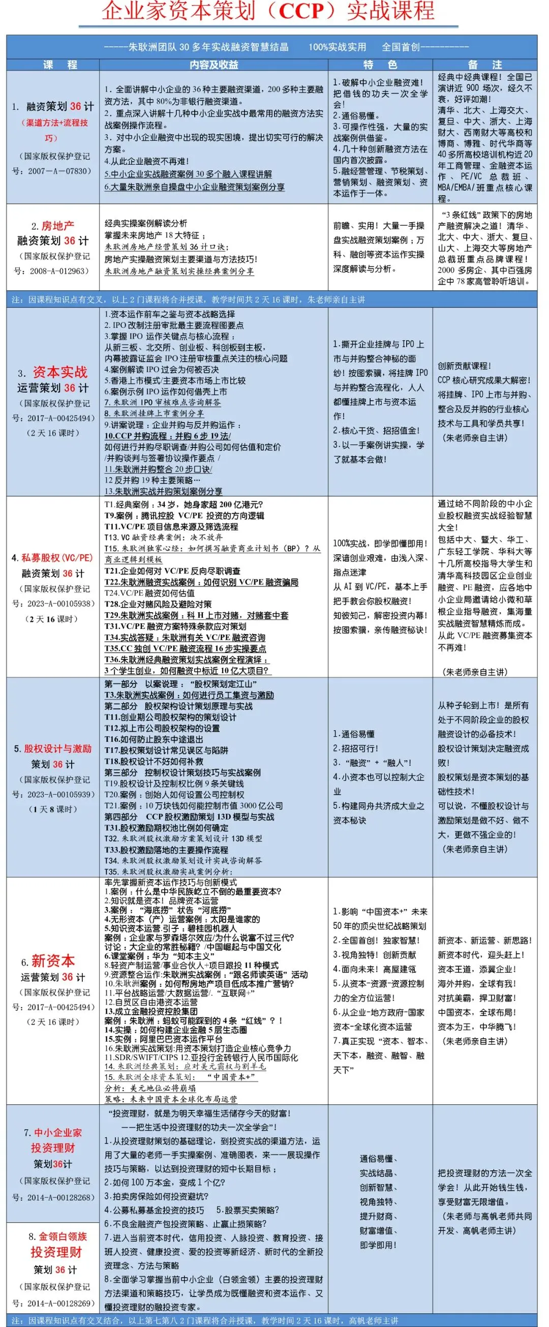 全国最早开展融资策划与资本运作(即资本策划)培训。源自2003年!