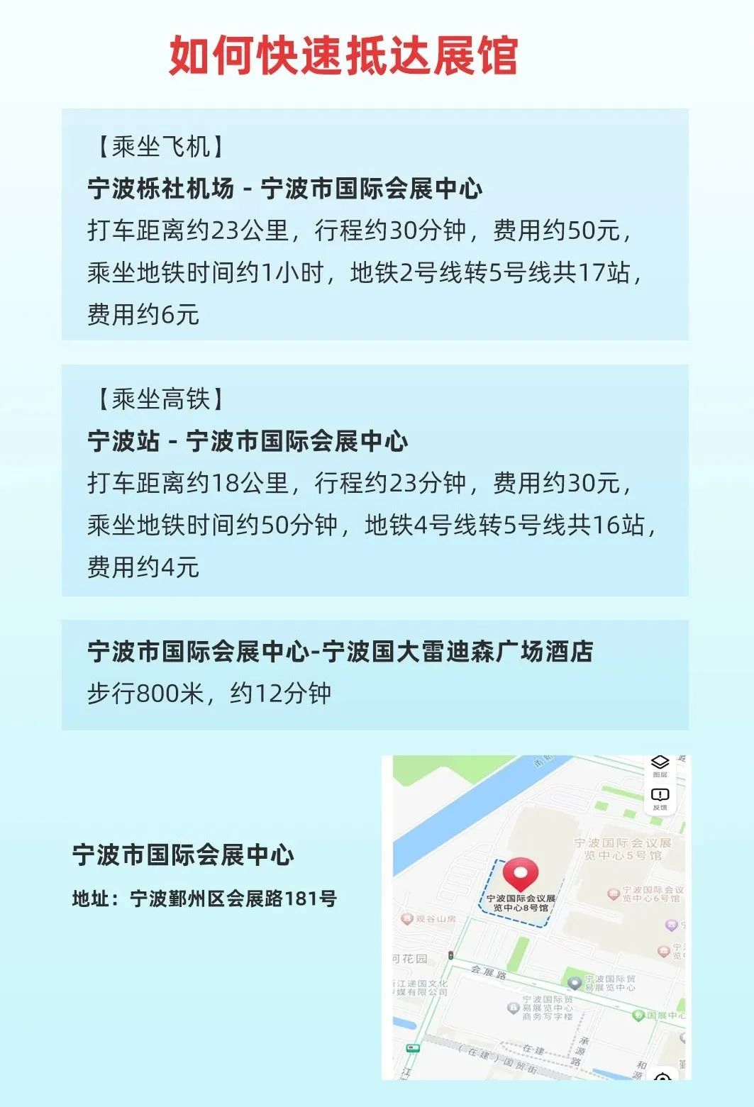 1.为减少您入场排队时间,请提前通过上方二维码填写信息进行登记(仅限观众)。2.手机无法微信注册或无法进行注册系统的,现场可让工作人员协助完成微信注册。3.请您持证件入馆,在展馆入口接受工作人员的查验后入场。5.展会期间东门、西门、南门、北门等4个入口,国际物流展在西门7号馆、8号馆凭二维码入馆。6.会期间统一管制,不得携带20寸以上的行李箱进馆,请寄存到指定地点(南北登录大厅)。