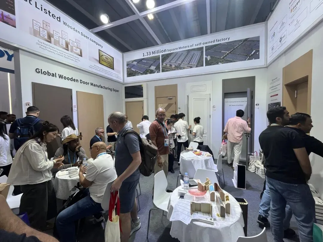 本次展会,江山欧派多款适配全球市场的核心产品集中亮相,备受海内外客商关注。经典PVC木门性能稳定、适配场景广泛,成为海外家装、公寓、酒店等领域采购商的重点关注对象;WPC木塑门防潮抗变形、耐候性优异,适配多雨高湿地区使用需求;烤漆木门质感出众、美观耐用,收获高端空间采购商的青睐。