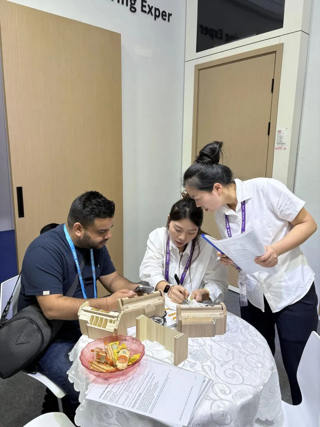 广交会上再度亮相的PVC隔音门凭借出色表现收获一众客商好评。PVC隔音门精准匹配海外酒店、公寓、高端住宅对静谧空间的需求,采用高密度隔音芯材与多重密封工艺,搭配吸音结构及降噪五金,隔音表现稳定可靠;同时延续环保、耐用、防潮的核心优势,可满足商用与居家空间的隔音使用需求。不少欧美、中东高端住宅项目客商在亲身体验产品隔音效果后纷纷称赞,现场表达强烈合作意愿。