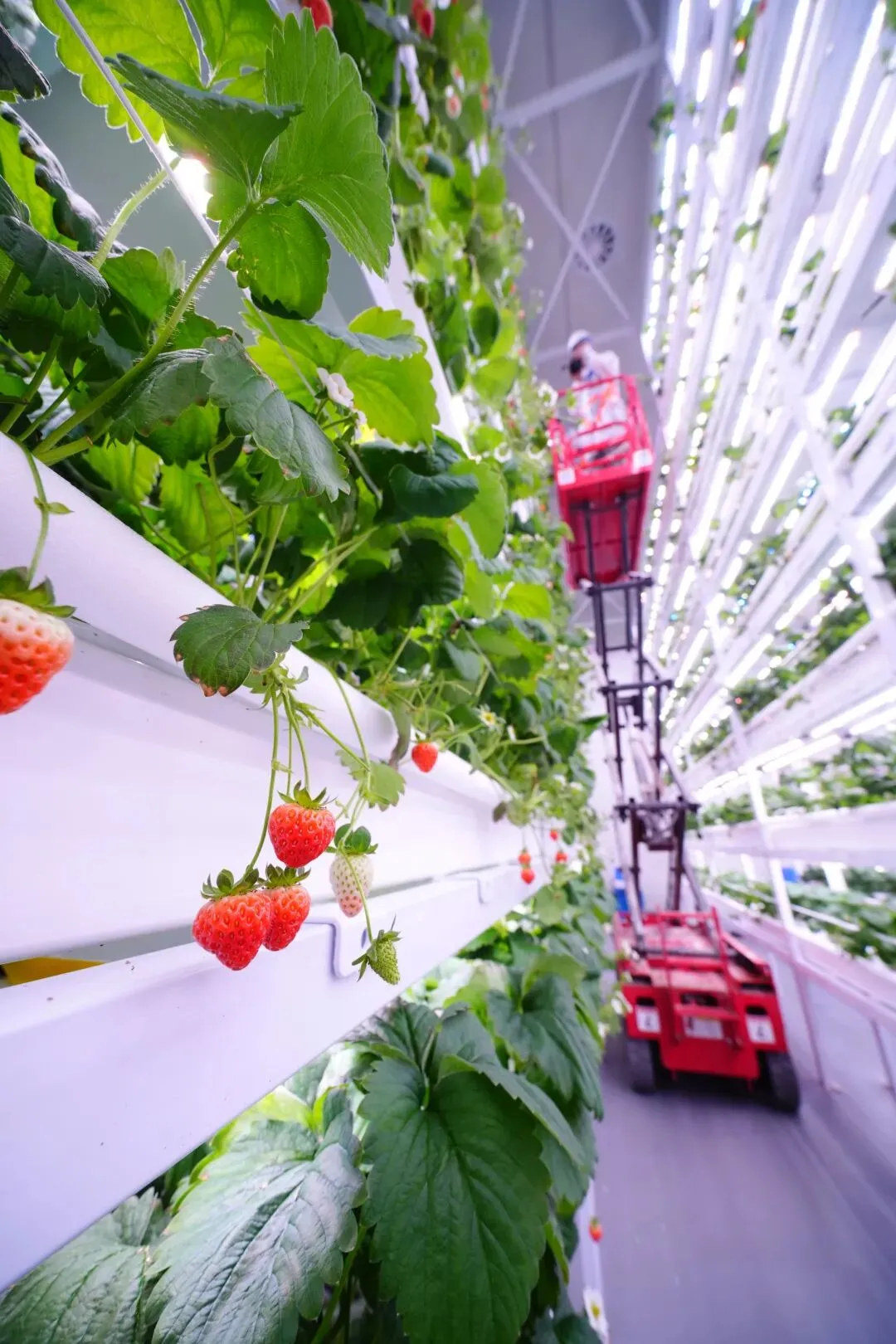 此外,这些草莓还“住”在10万级洁净标准的无菌智能车间里,工厂对操作人员和相关物料的出入实行严格管理,遍布车间的上百个传感器能够实时监测温度、湿度、光照强度等参数,在光温耦合、光与营养耦合技术“加持”下,精准控制植物生长,产出“零农药、零激素、零重金属、零催熟”的“四零草莓”。