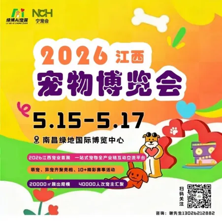 概 况:绿博Ai宠展·2026江西宠物博览会是南昌绿地国际博览中心2026年策划举办的第1个宠物IP自办展览,展会规划20000㎡展览面积,预计吸引40000人次参会,以“轻量化产品 +智慧化服务+沉浸式体验”为导向,全面呈现宠物产业全链条创新成果,打造“宠物+”全维度经济平台。
