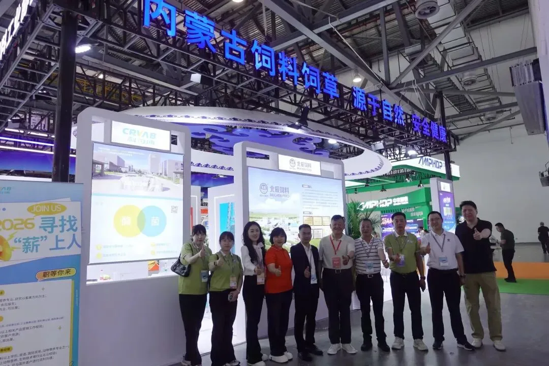展会期间,内蒙古饲料工业协会代表团集体亮相金河生物展位并合影留念。王志军会长与协会成员深入交流,探讨区域饲料产业协同发展路径。他强调:"协会将持续搭建政企沟通桥梁,推动内蒙古饲料工业与全国先进技术接轨,助力草原畜牧业高质量发展。"
