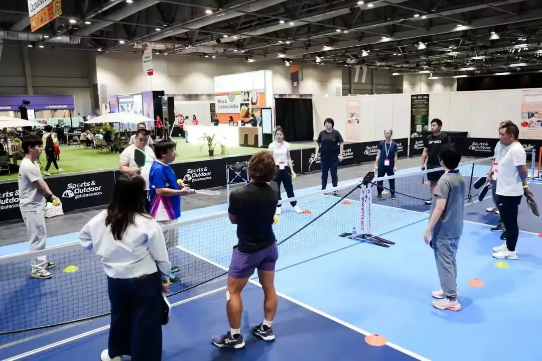 展会现场设有匹克球慈善博览杯赛事及互动训练营,既可观赏精彩对决,也能亲身参与体验。