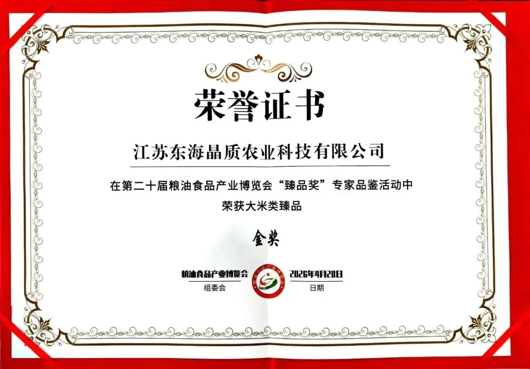 经激烈角逐,专家评选,凭借过硬的品质,东海大米“道穗香”荣获第二十届粮油食品产业博览会金奖荣誉。