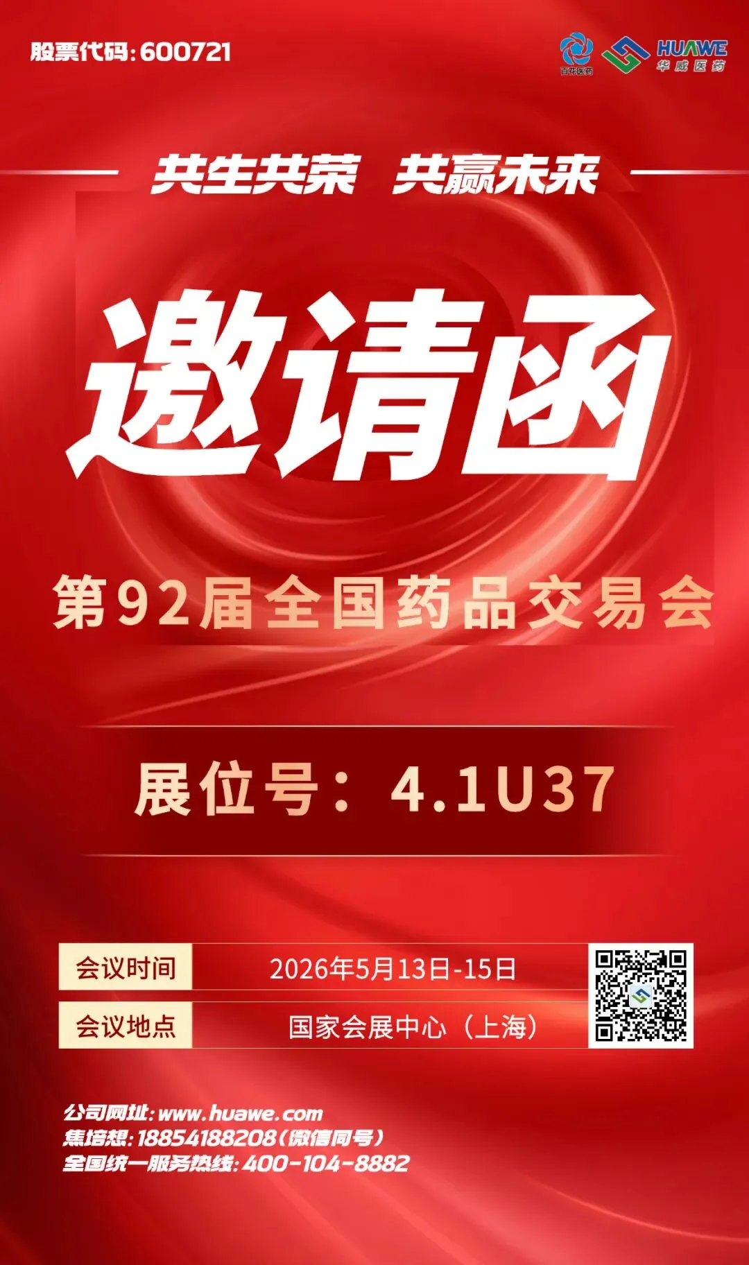 华威医药诚邀各位合作伙伴莅临参加,本次会议华威医药设有展位(展位号 4.1U37),期待在现场与您交流分享。