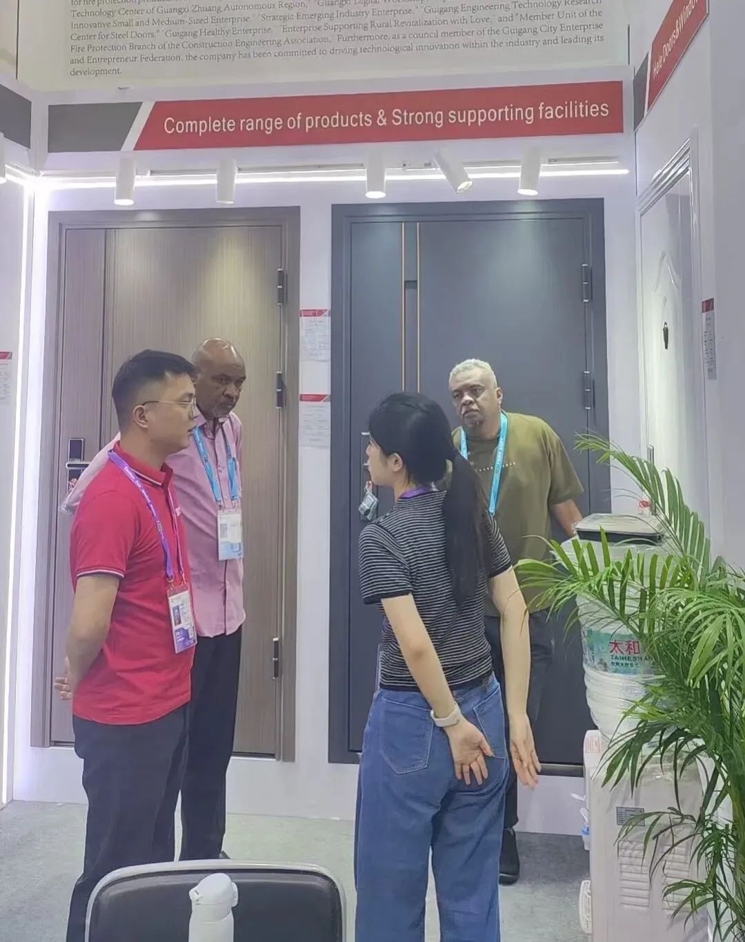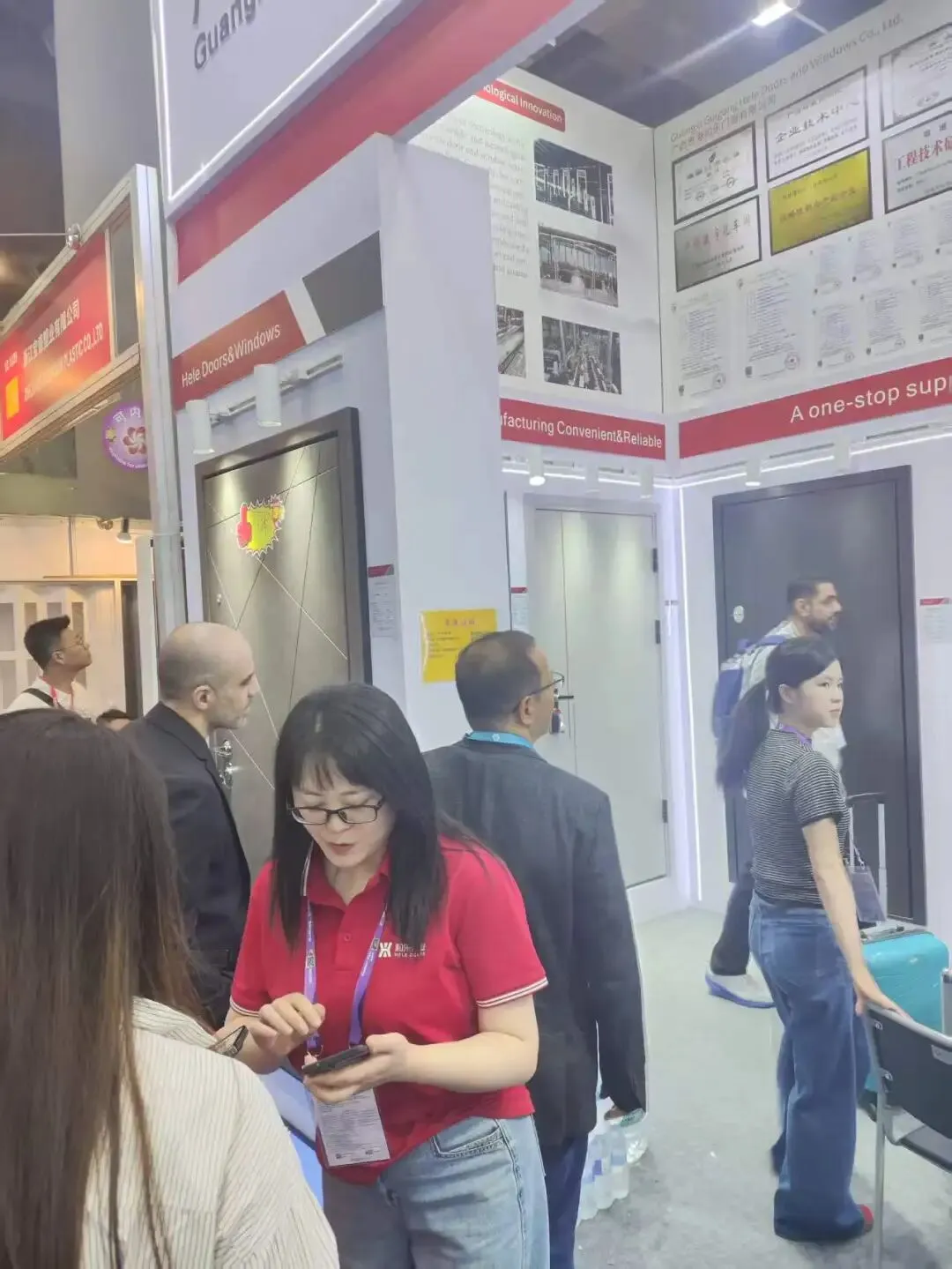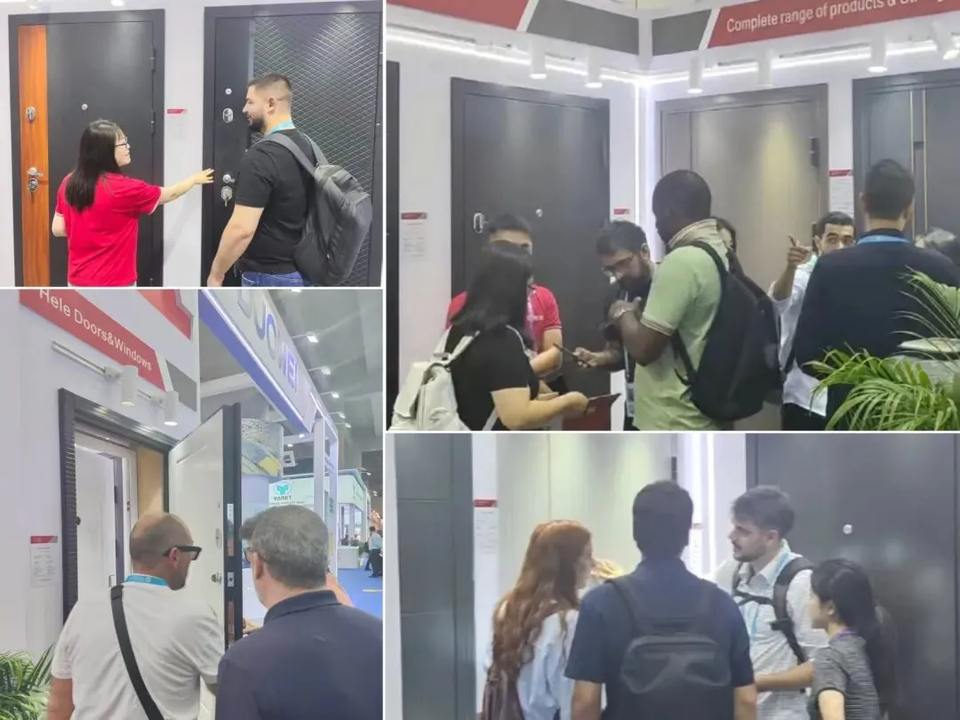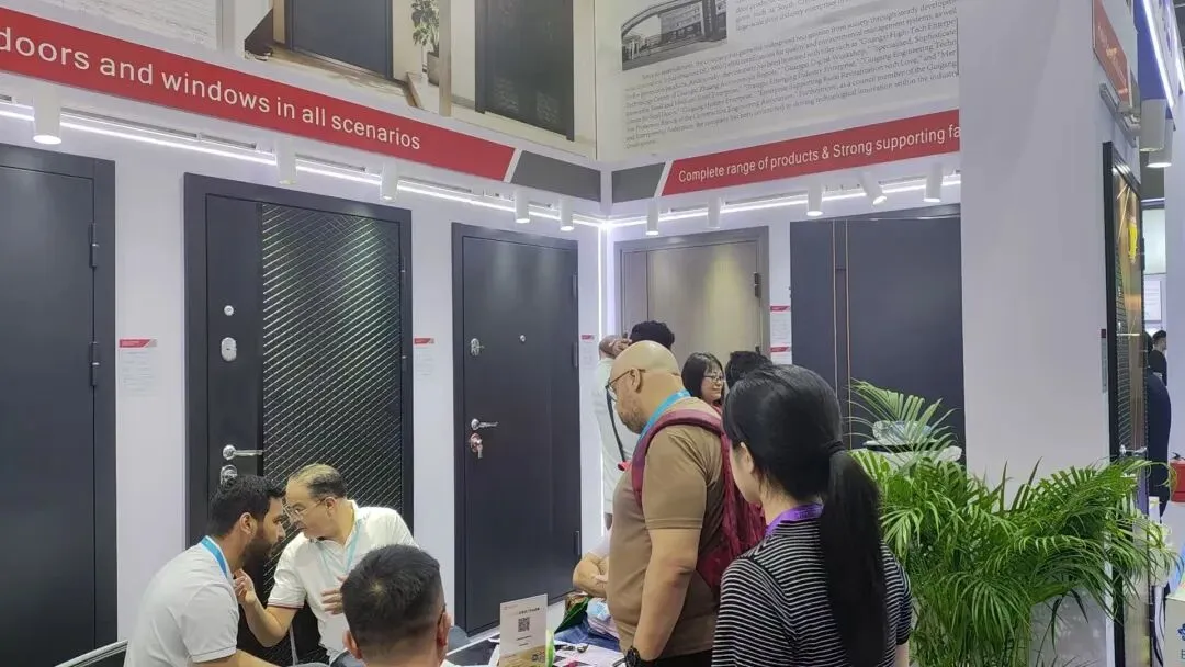 开展首日,和乐门窗展位便迎来全球多国采购商驻足咨询。来自欧洲、中东、东南亚等地区的外商,对产品的设计、工艺、品质、供应等高度认可,现场深度洽谈不断,合作意向踊跃。