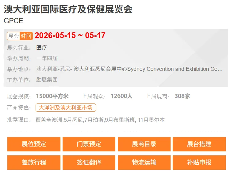 [展位预定、门票预定、展商目录、展台搭建、差旅行程、签证、翻译、物流运输、补贴申报]