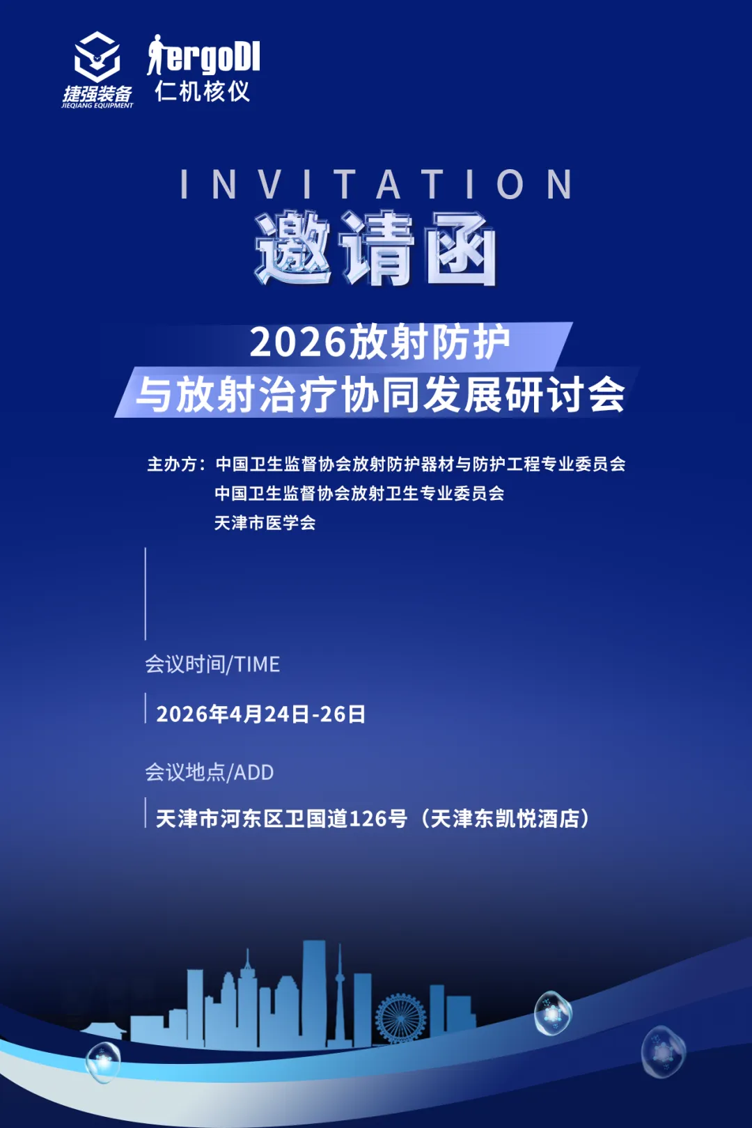 为助推放射防护与放射治疗学科协同创新、高质量发展,由中国卫生监督协会放射防护器材与防护工程专委会、中国卫生监督协会放射卫生专委会、天津市医学会联合主办的放射防护与放射治疗协同发展研讨会暨首届电离辐射工程防护技术研讨会,将于2026 年 4 月 24 日 —26 日在天津盛大召开。上海仁机即将重磅亮相,齐聚行业专家同仁,共探技术前沿、共绘行业新蓝图,共启辐射防护领域发展新机遇。