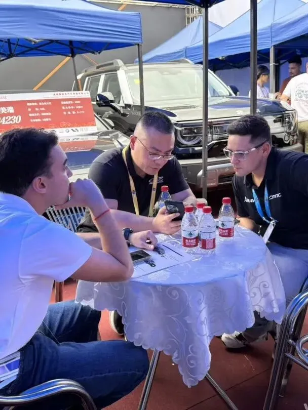 面对来自全球众多国家和地区的采购商,中欧国际整车贸易团队组建了具备多语种能力的国际化参展团队。团队成员涵盖能流利运用英语、西语、俄语等语言的国际人才,有效破除与中东、非洲、欧洲等地区采购商的沟通障碍。