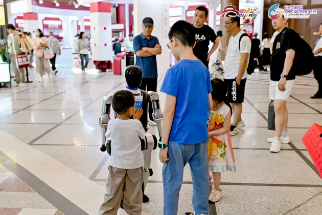 展会科技感十足,科技氛围拉满,数智化场景贯穿全场。展馆前厅的机器人握手迎宾,展台前机器人表演茶艺、挥毫秀书法。观众在丰台展区前排队等候通过VR眼镜体验多彩虚拟世界;最新款的蔚来、北汽极狐等新能源汽车为观众带来绿色智慧出行新体验;本草印象首发中医人工智能健康状态辨识系统等智慧装备……这些前沿技术、智能装备和科技场景不断赋能文旅,为观众呈现出"科技让文旅更精彩"的生动图景。