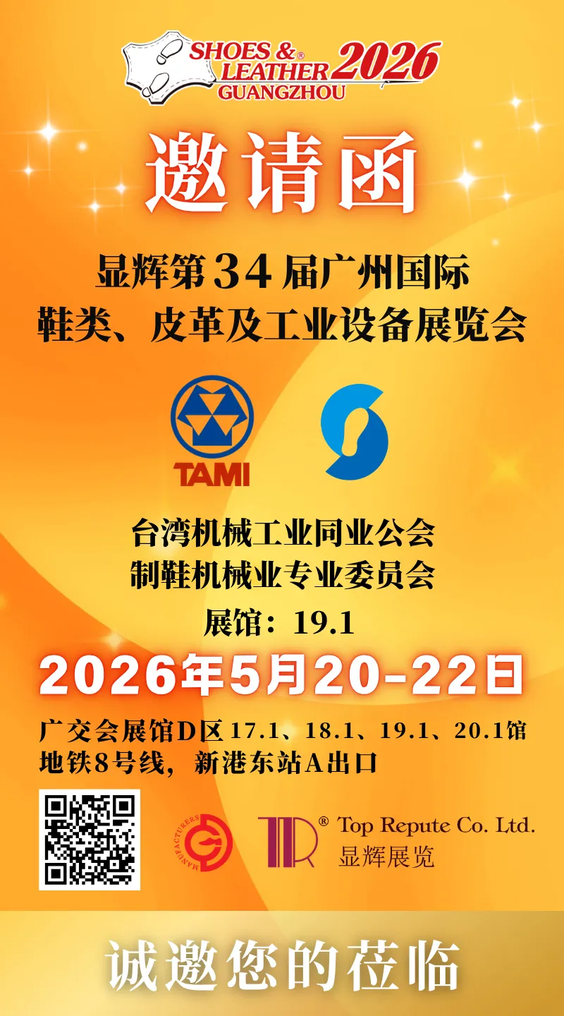 台湾机械工业同业公会-制鞋机械业专业委员会与显辉广州鞋革展,多年来携手同行、紧密联动,共同推动两岸及全球制鞋机械行业深度交流。今年台湾鞋机展团也将继续亮相显辉第34届广州国际鞋类、皮革及工业设备展览会,携约50个展位的强劲阵容重磅登场。
