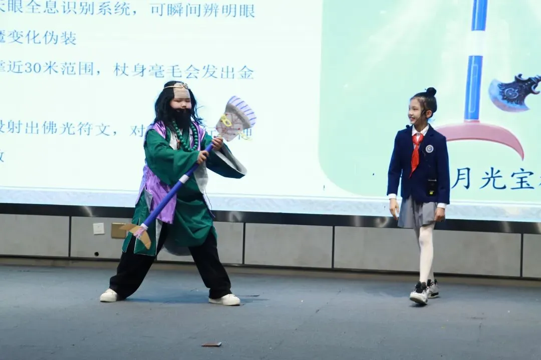 五年级将《西游记》推向科创高地:智能芯片植入金箍棒、量子锁定升级紫金葫芦——当古典法器遇上科技助力,故事也会产生新的魔力。