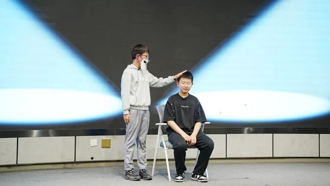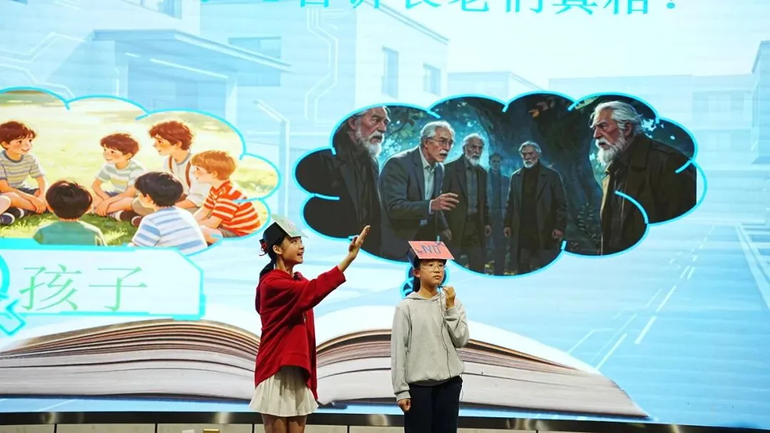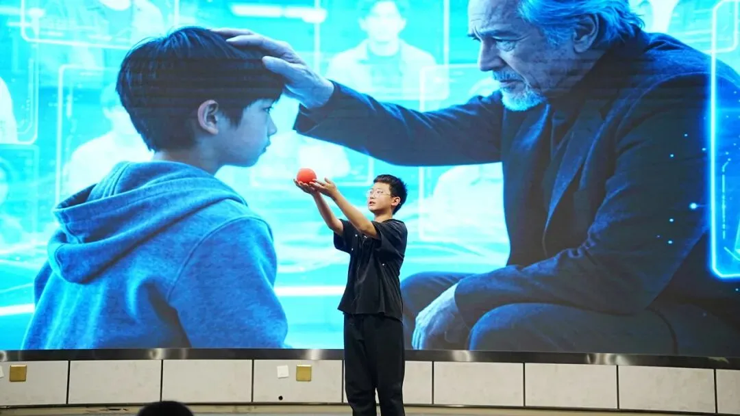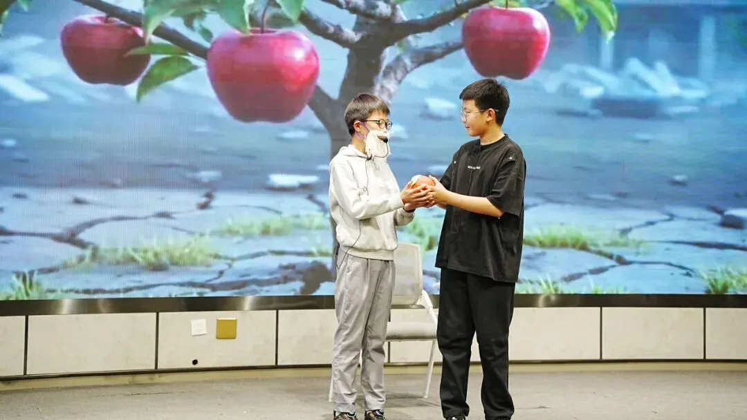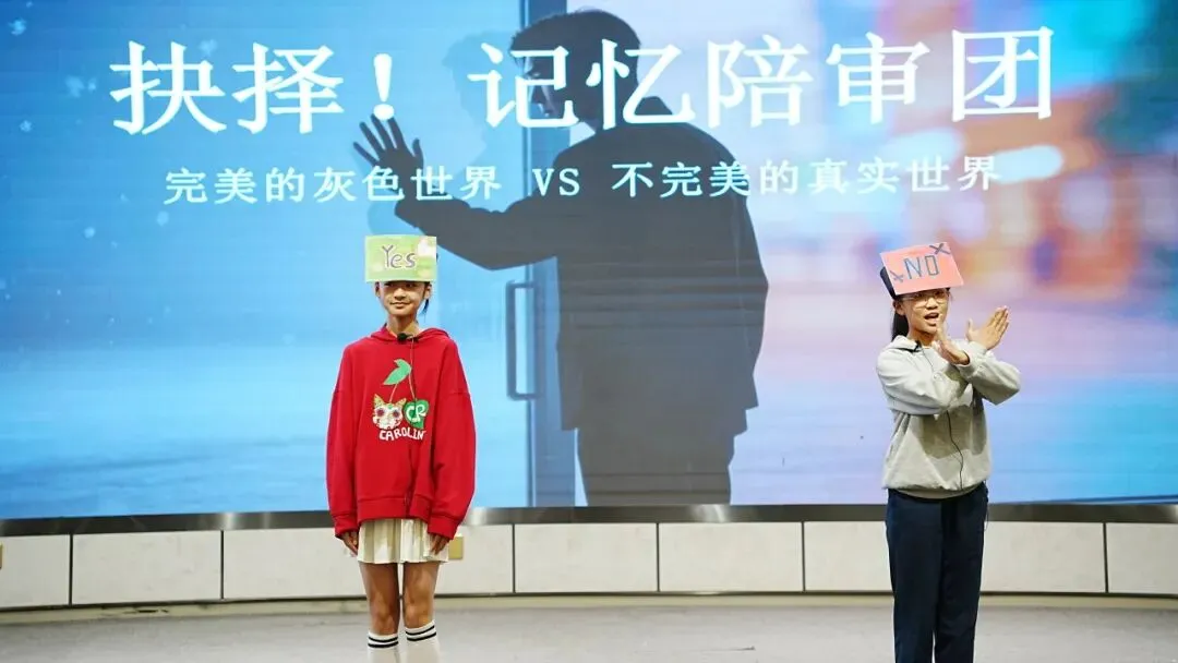 六年级压轴呈现科幻作品——《记忆传授人》沉浸式舞台剧,全体观众化身“记忆陪审团”现场抉择,“YES”还是“NO”,思辨之光闪耀全场。