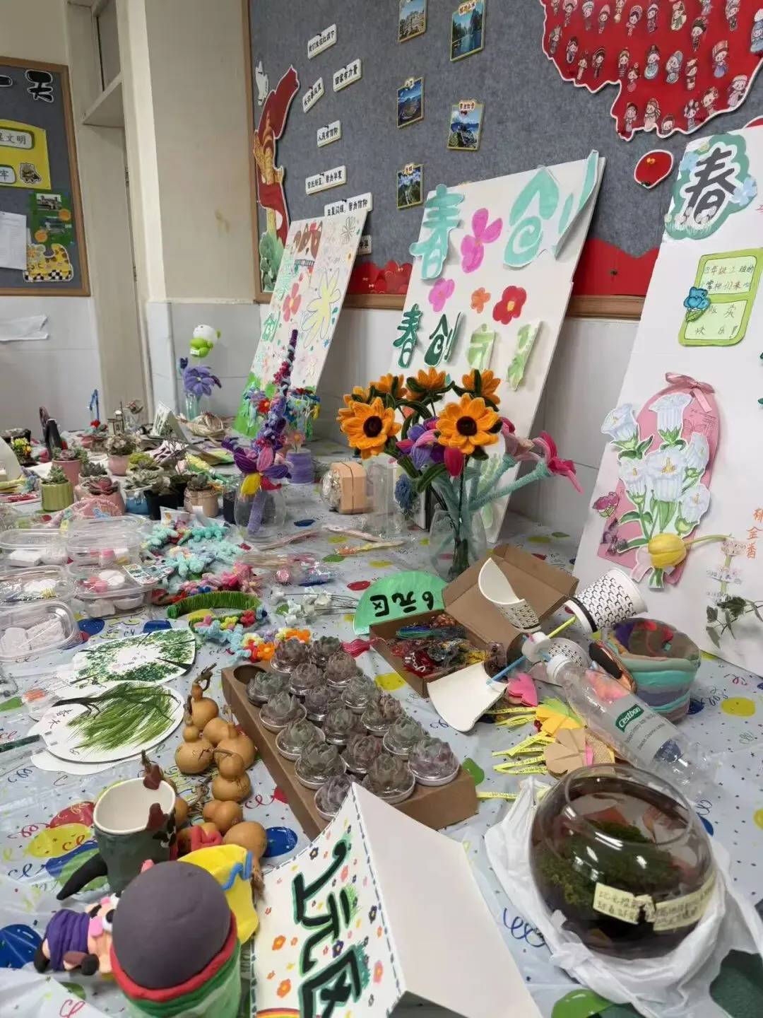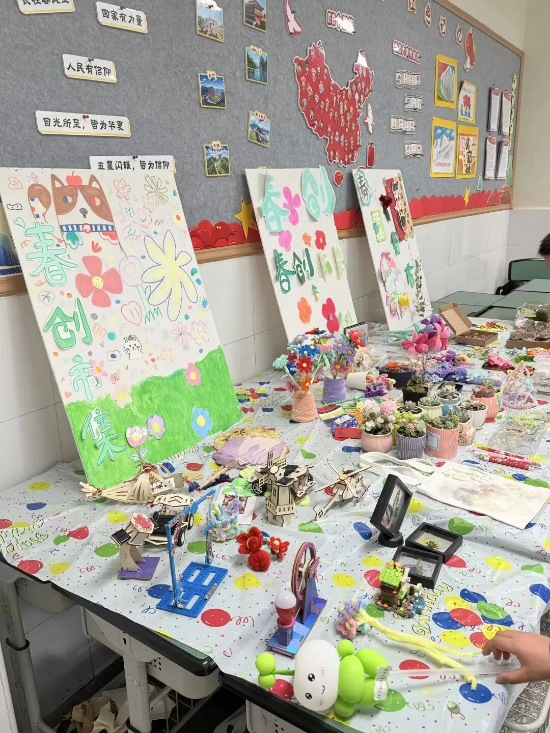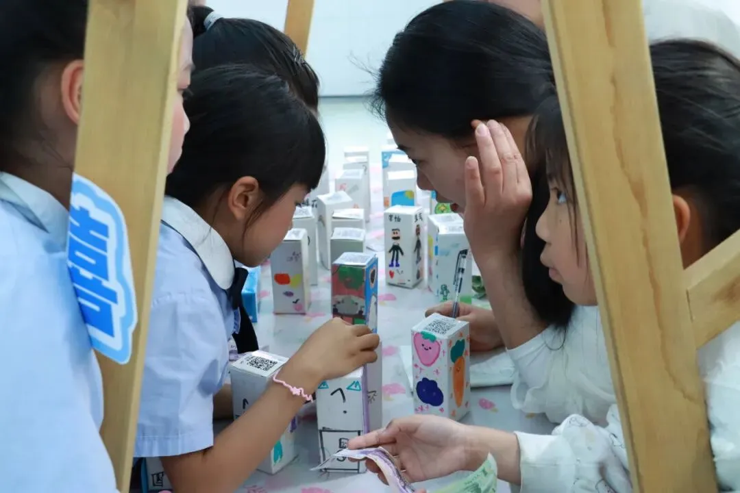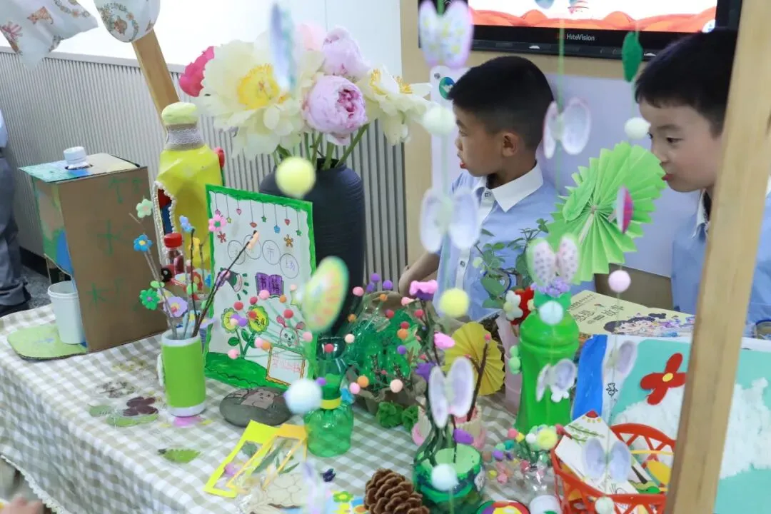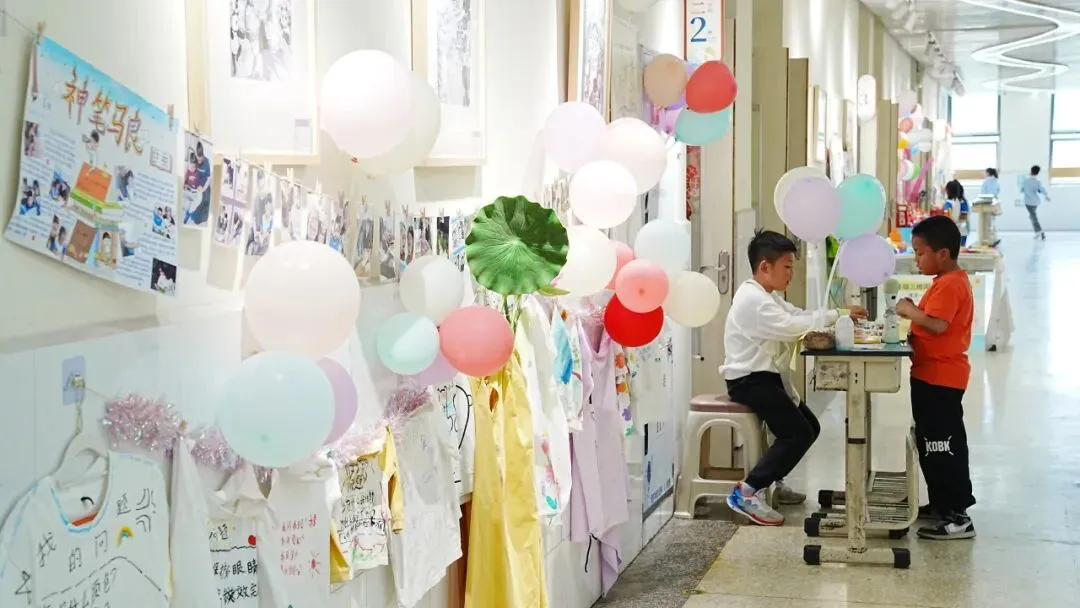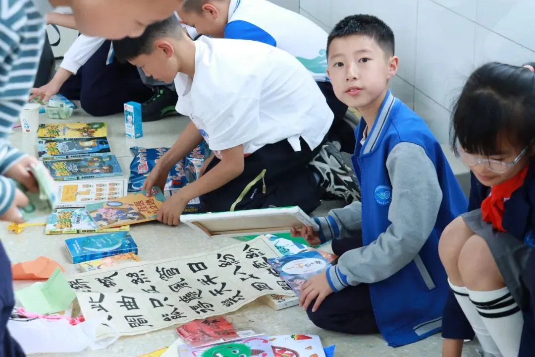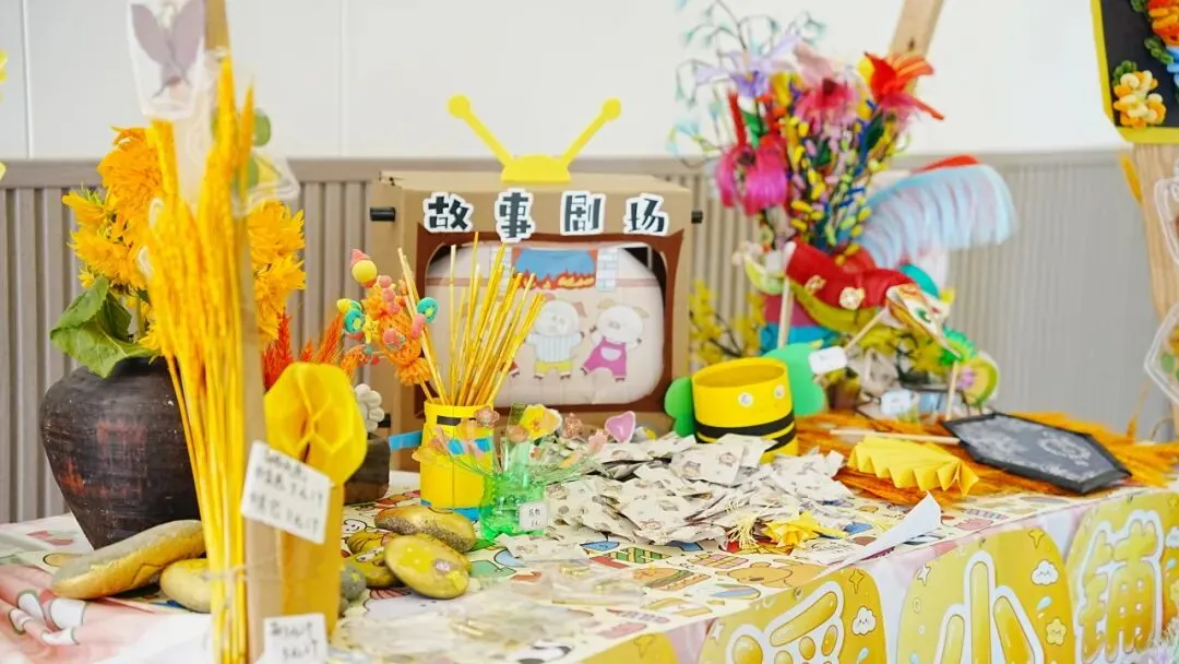 展演活动结束后,教室、廊道已然化身小鱼儿们的童趣市集。
