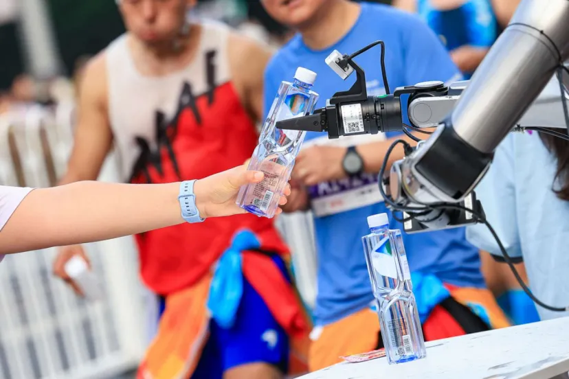 借此契机,百岁山还积极与多方前沿科技力量展开深度联动——在赛道关键点位,联合“星海图”企业,利用其先进的机器人Pro为跑者实时精准递上矿泉水补给;同时,品牌也与“高德”等知名科技平台探索了跨界互动的新可能。这种生动的“人机交互”补给场景与多维度的科技品牌联动,是百岁山在体育赛事合作领域的一次创新尝试。