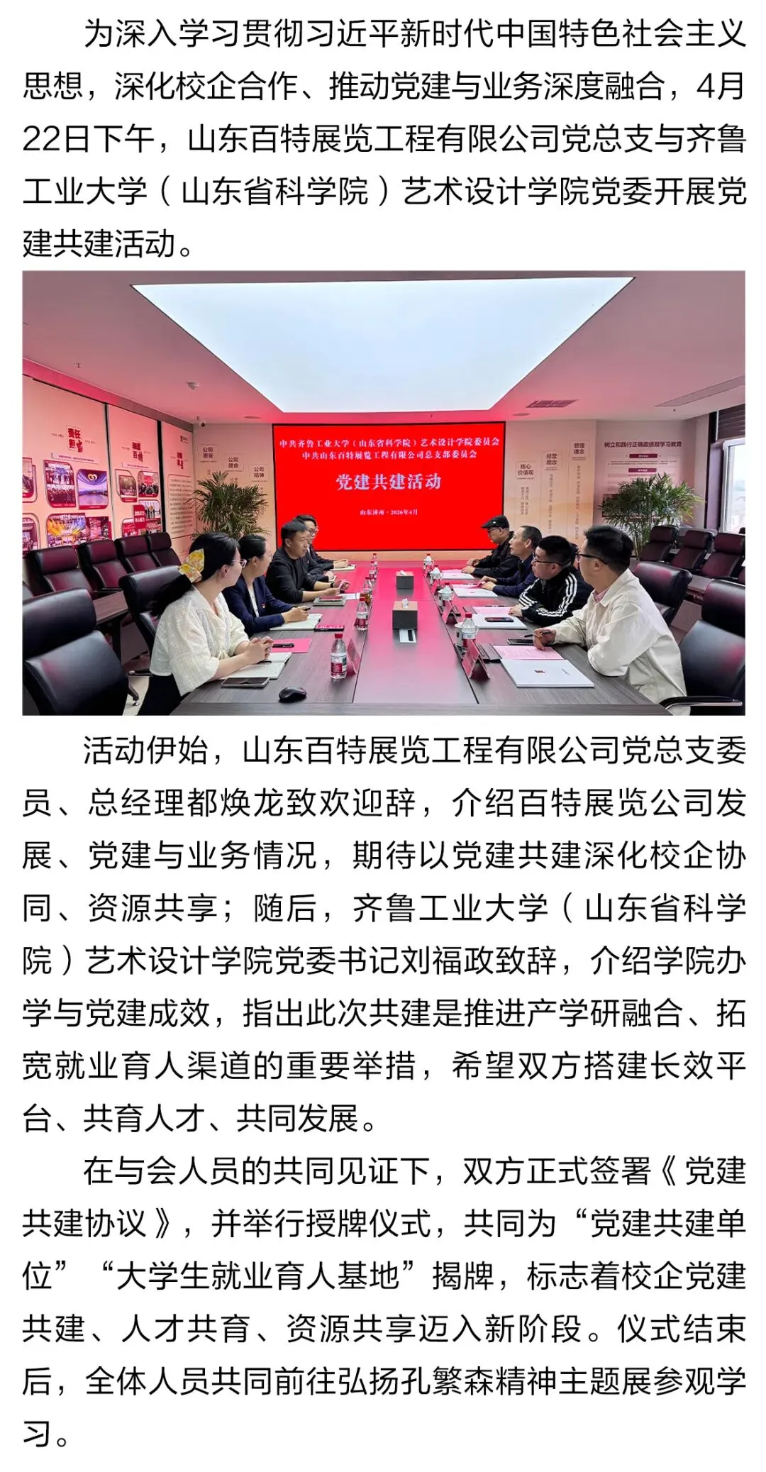 山东百特展览工程有限公司党总支与齐鲁工业大学(山东省科学院)艺术设计学院党委开展党建共建活动