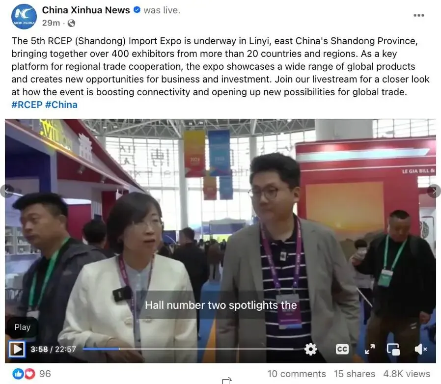 The 5th RCEP (Shandong) Import Expo is underway in Linyi, east China's Shandong Province, bringing together over 400 exhibitors from more than 20 countries and regions. As a key platform for regional trade cooperation, the expo showcases a wide range of global products and creates new opportunities for business and investment. Join our livestream for a closer look at how the event is boosting connectivity and opening up new possibilities for global trade.