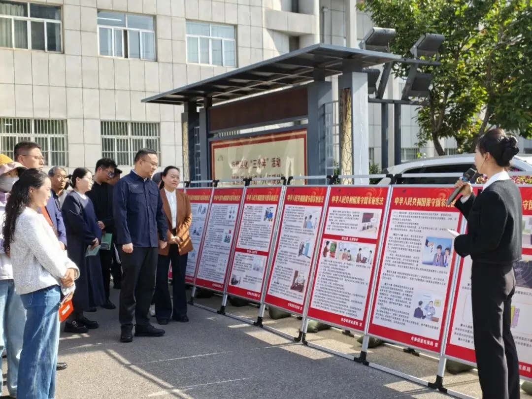 活动伊始,讲解员围绕现场展板,向参与的领导干部开展保密知识科普讲解。讲解内容紧扣《中华人民共和国保守国家秘密法》《中华人民共和国密码法》等核心法律法规,结合工作实际中的保密风险点,用通俗易懂的语言,详细解读了保密工作的重要意义、基本要求、涉密载体管理、保密责任追究等基础内容,重点强调了日常工作中容易忽视的保密细节,引导大家深刻认识保密工作的严肃性和重要性,树立“保密无小事、责任大于天”的理念。
