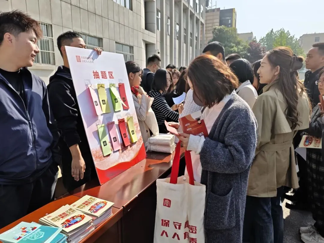 活动现场精心设置了抽题区与兑奖区,参与干部有序抽题,积极寻找答案,气氛热烈有序,工作人员现场发放保密文创奖品予以鼓励,既增添了活动的趣味性,又提高了国家安全和保密意识。
