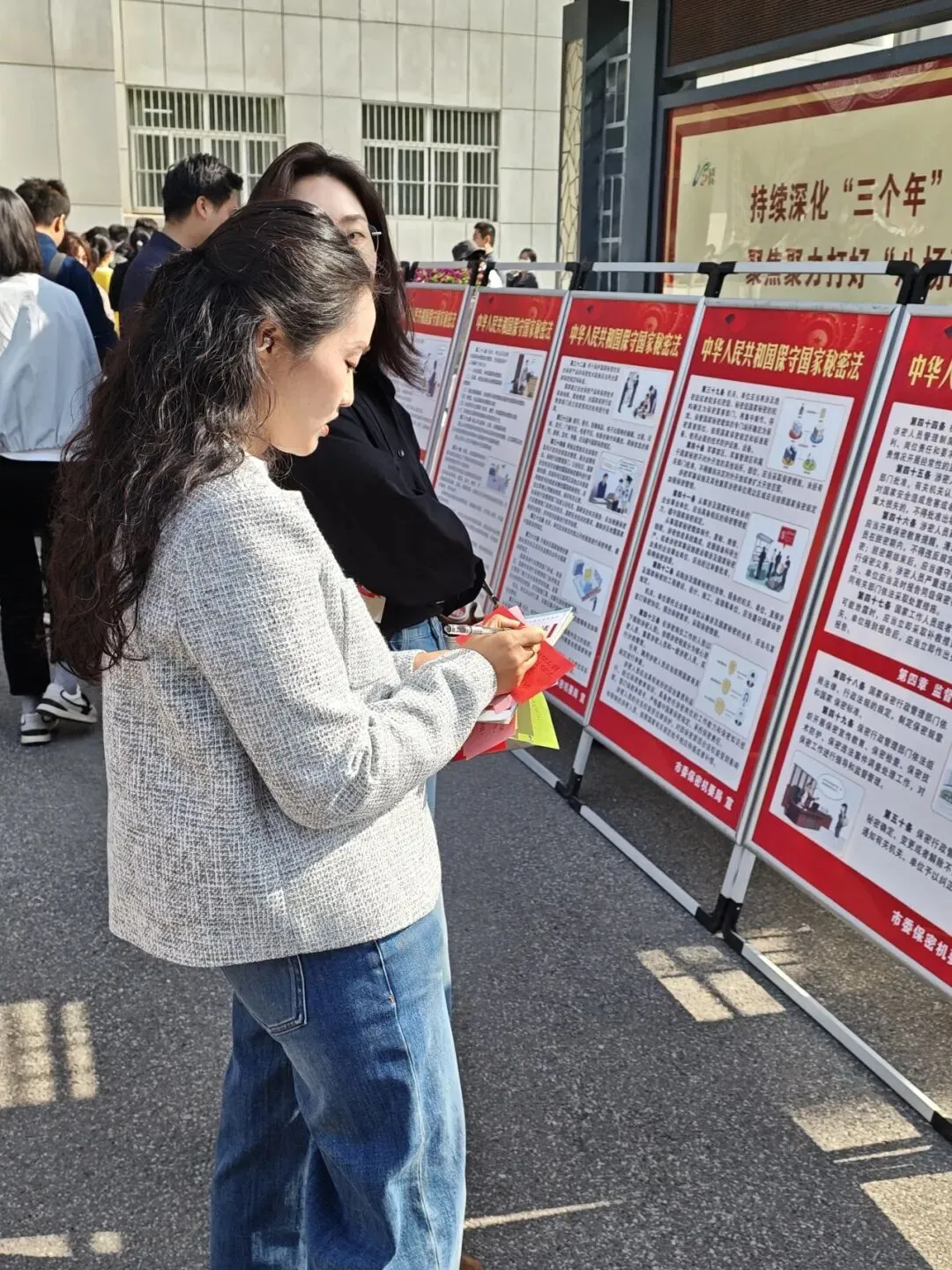 保密知识竞猜环节结束后,进入自由观展阶段。参与的干部自主前往各处展板,仔细观看展板内容,结合前期讲解的知识,进一步梳理保密要点、排查自身工作中的保密隐患。工作人员随时解答大家提出的保密工作相关疑问,耐心指导大家如何在日常工作中规范操作、防范泄密风险,确保每一位参与者都能有所学、有所悟、有所获。