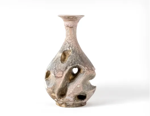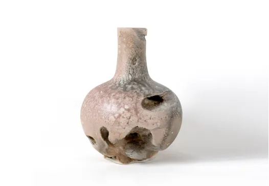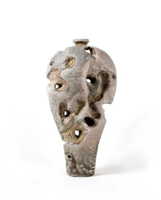 王欣此次入選作品為“靜·石語”系列。該系列以太湖石的自然形態為核心意象,以陶瓷為媒介,通過泥條層層疊加的塑造方式呼應太湖石歷經歲月洗禮後形成的肌理與孔隙結構,並採用柴窯燒制,使窯火穿透其間,轉化出豐富而自然的視覺效果。作品在偶然與必然之間尋求平衡,重塑了陶瓷藝術中水、火、土交融生成的獨特美感,呈現出自然意象、人文思考與當代陶藝語言之間的深層對話。