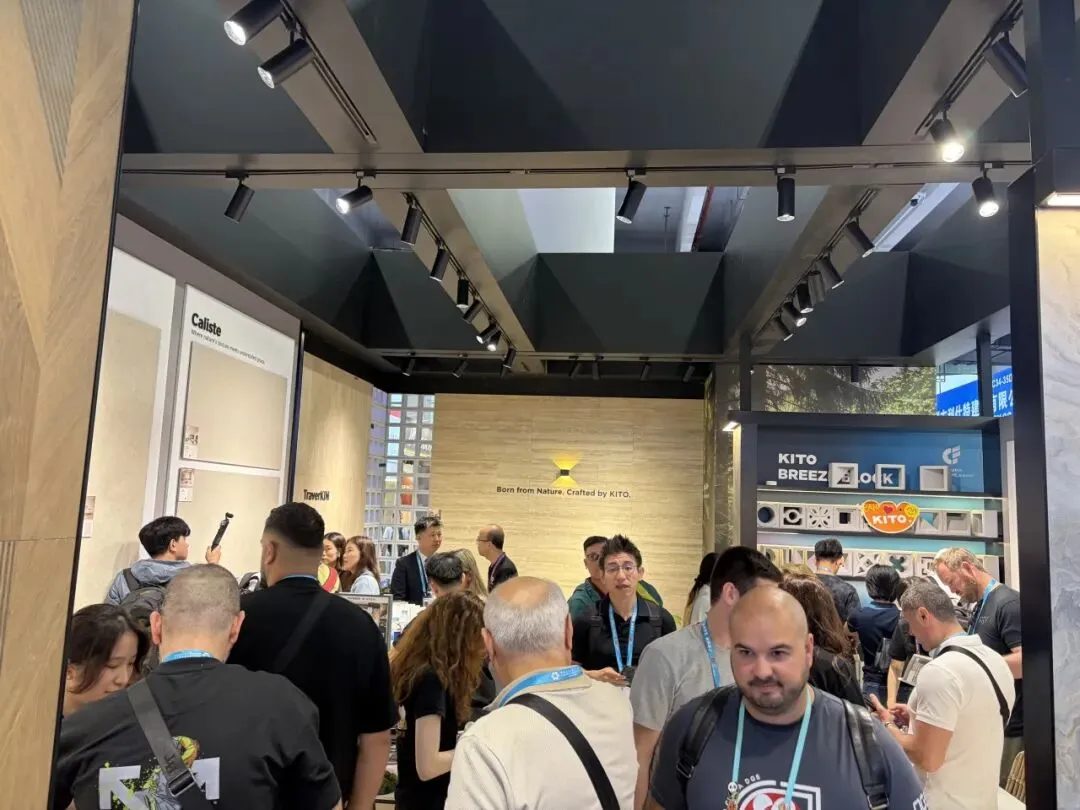 开展首日,金意陶展位凭借差异化的品牌定位与独具特色的趋势产品,吸引了来自全球各地的参展商驻足观看、洽谈,在广交会上攒足眼球。