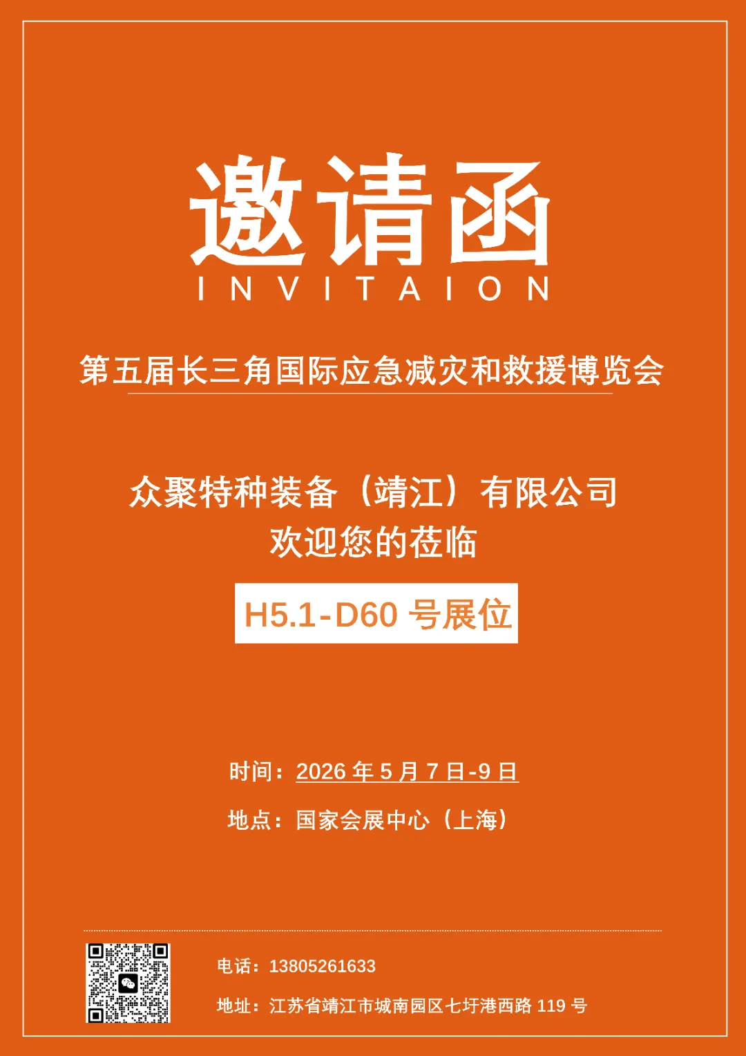 众聚特种装备(靖江)有限公司热情喊你来看展咯!