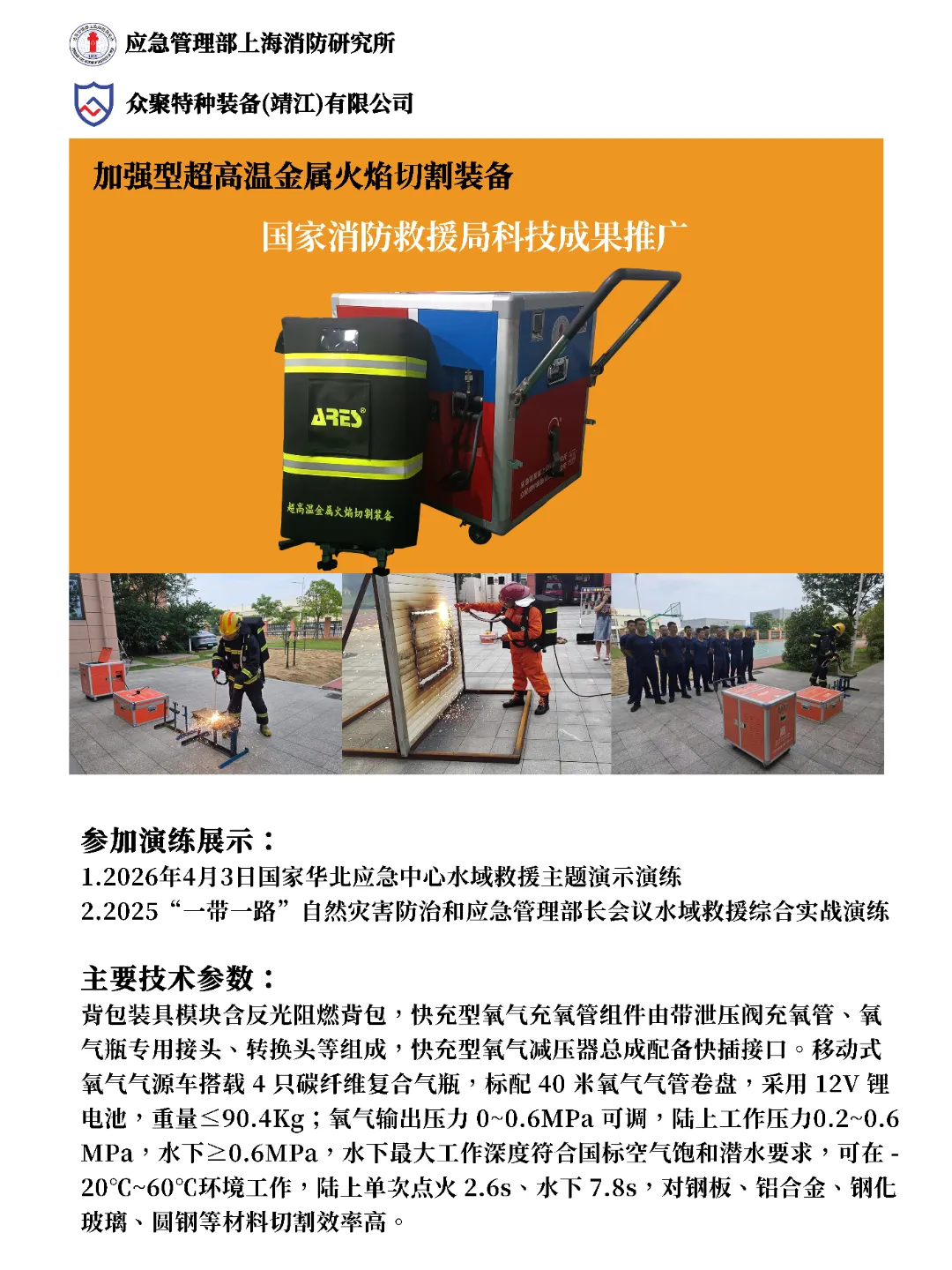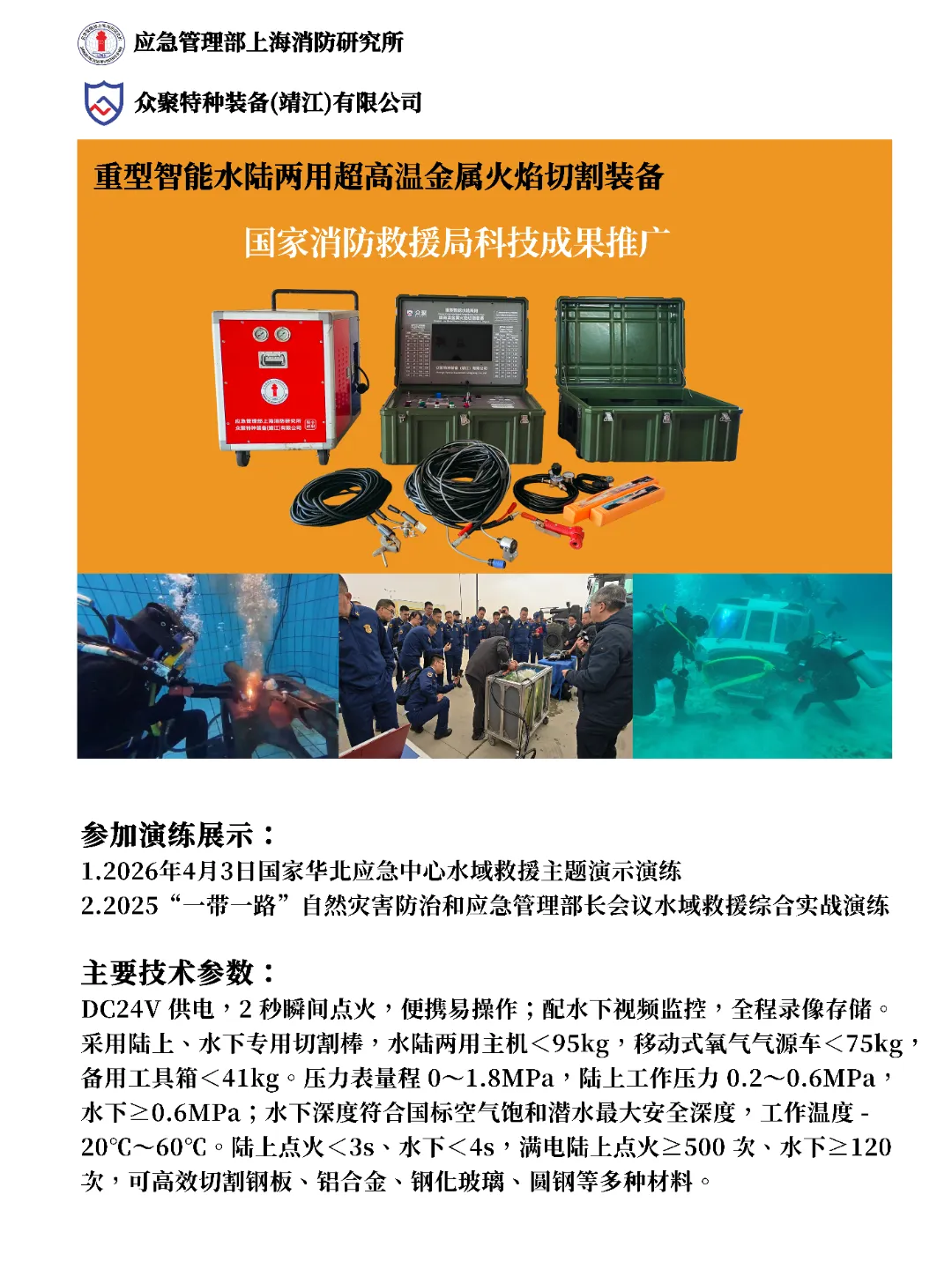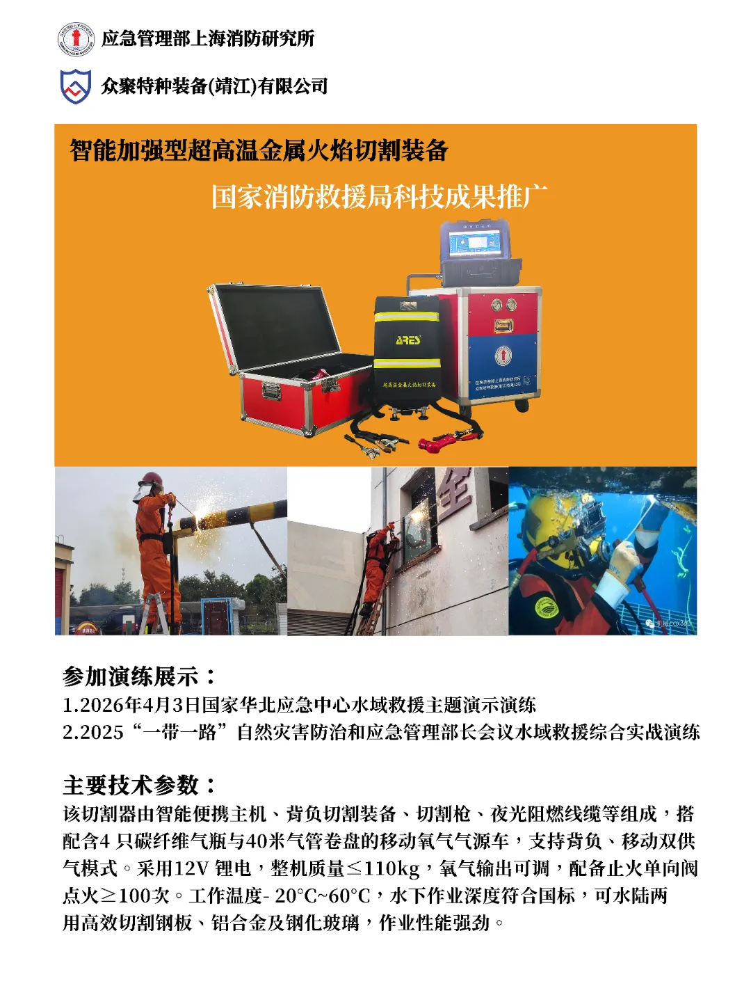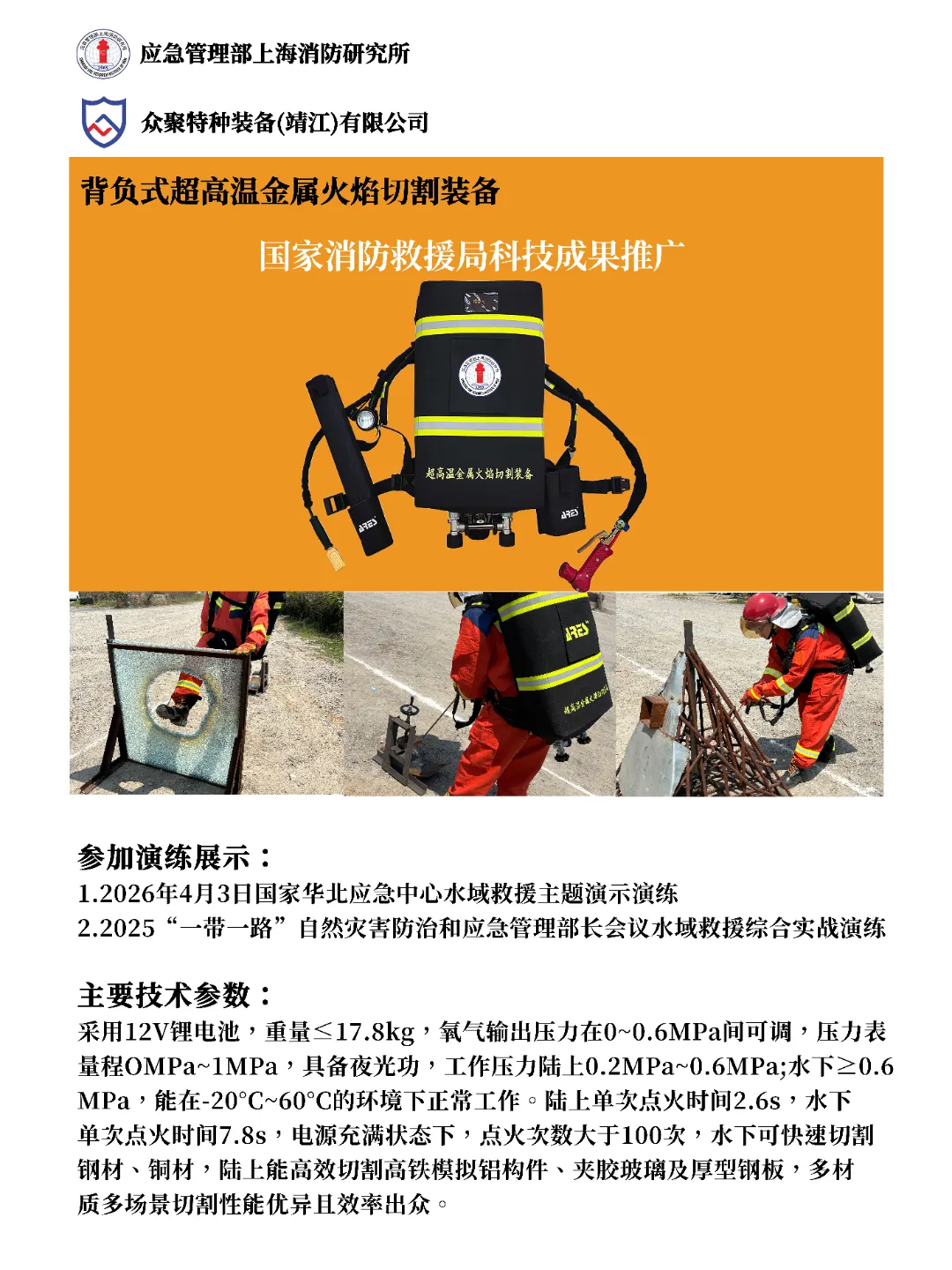 众聚特种装备(靖江)有限公司是一家专注于研发、生产和销售高端消防救援、应急破拆、特种作业等专业装备的高科技企业。公司以技术创新为核心驱动力,致力于为客户提供性能卓越、安全可靠的产品及全方位的技术解决方案与服务支持。