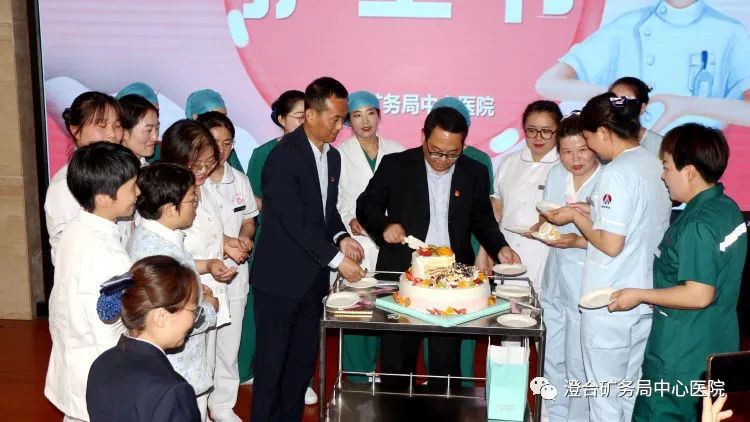 院领导为护士姐妹们送上节日的祝福和节日蛋糕,共同分享这一美好时刻,共同庆祝护士节。