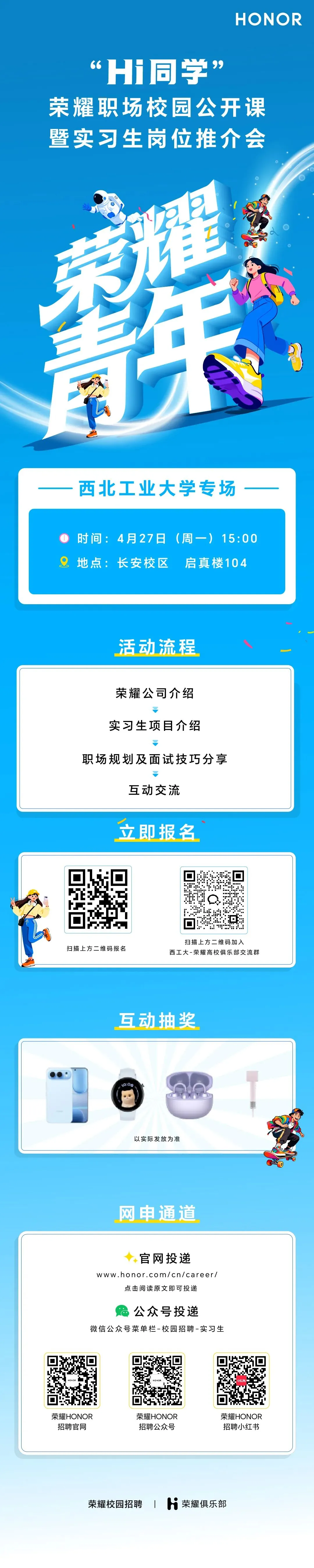 实习 | “Hi 同学”荣耀实习生岗位推介会暨职场校园公开课 西北工业大学专场