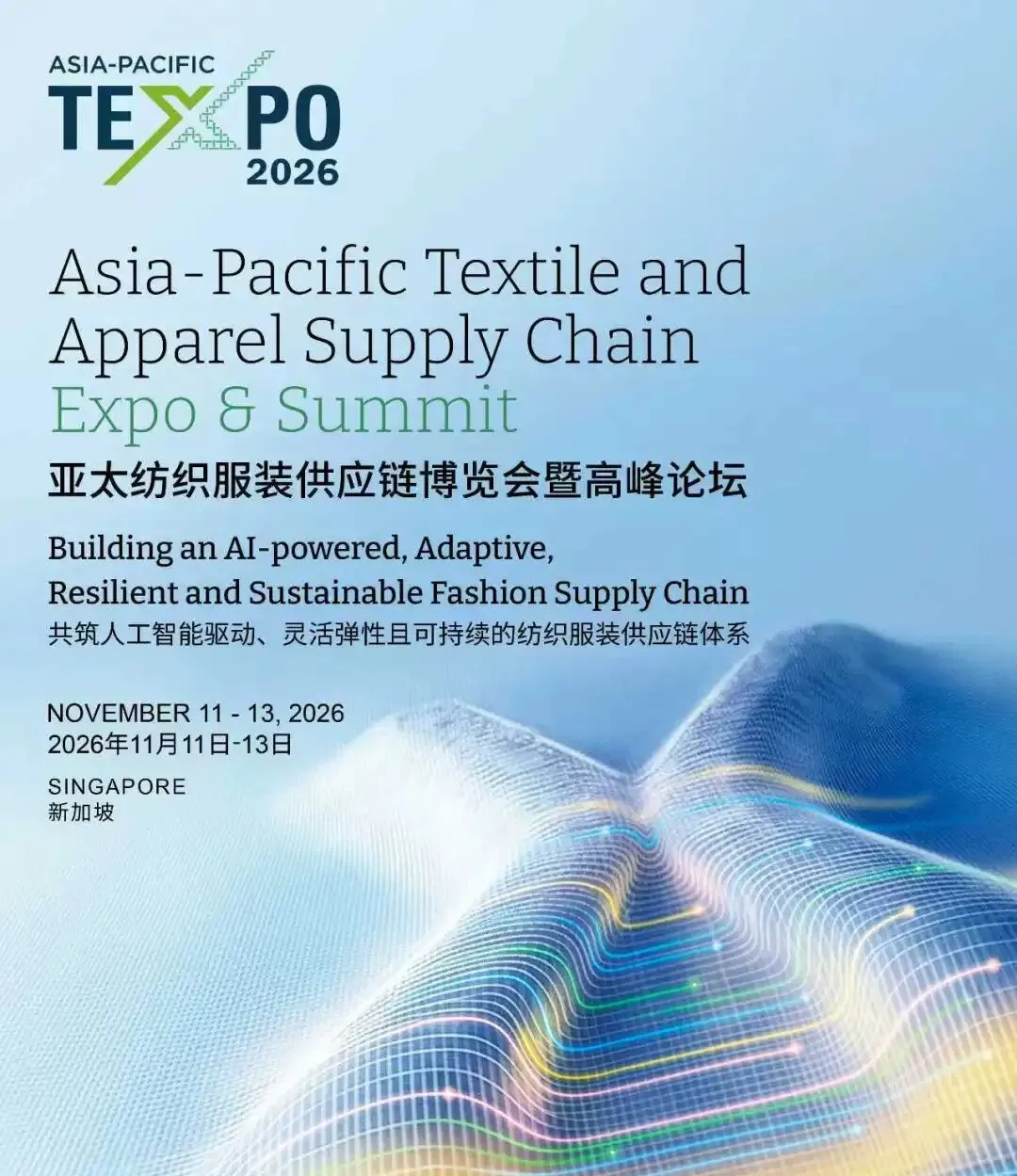 作为区域内产供链合作的高端对话平台,第三届亚太纺织服装供应链博览会暨高峰论坛(APTEXPO2026)将于2026年11月11—13日再度亮相新加坡金沙会议展览中心,这场以新加坡为支点、以东盟为纵深、以全球为视野的亚太纺织服装产业共同体盛会,将围绕“共筑人工智能驱动、灵活弹性且可持续的纺织服装供应链体系”这一主题,推动亚太纺织服装产业链从“贸易互联”走向“价值共创”。