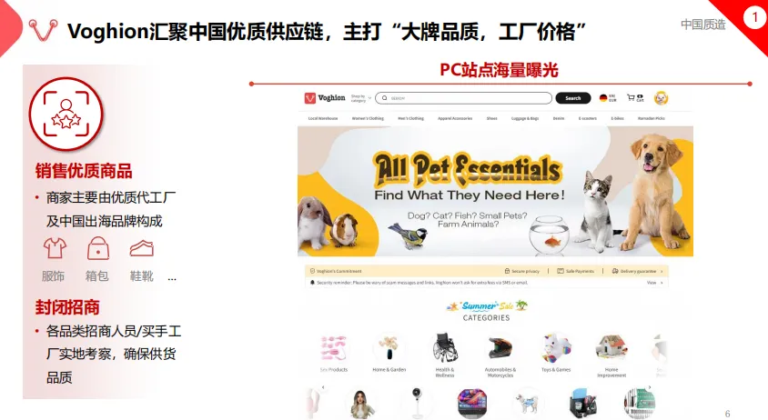 目前,Voghion的业务已覆盖40多个国家和地区,包括英国、法国、德国、美国、澳大利亚、新西兰等主要市场,供应链遍布全球,致力于向全球消费者提供优质的商品和服务。