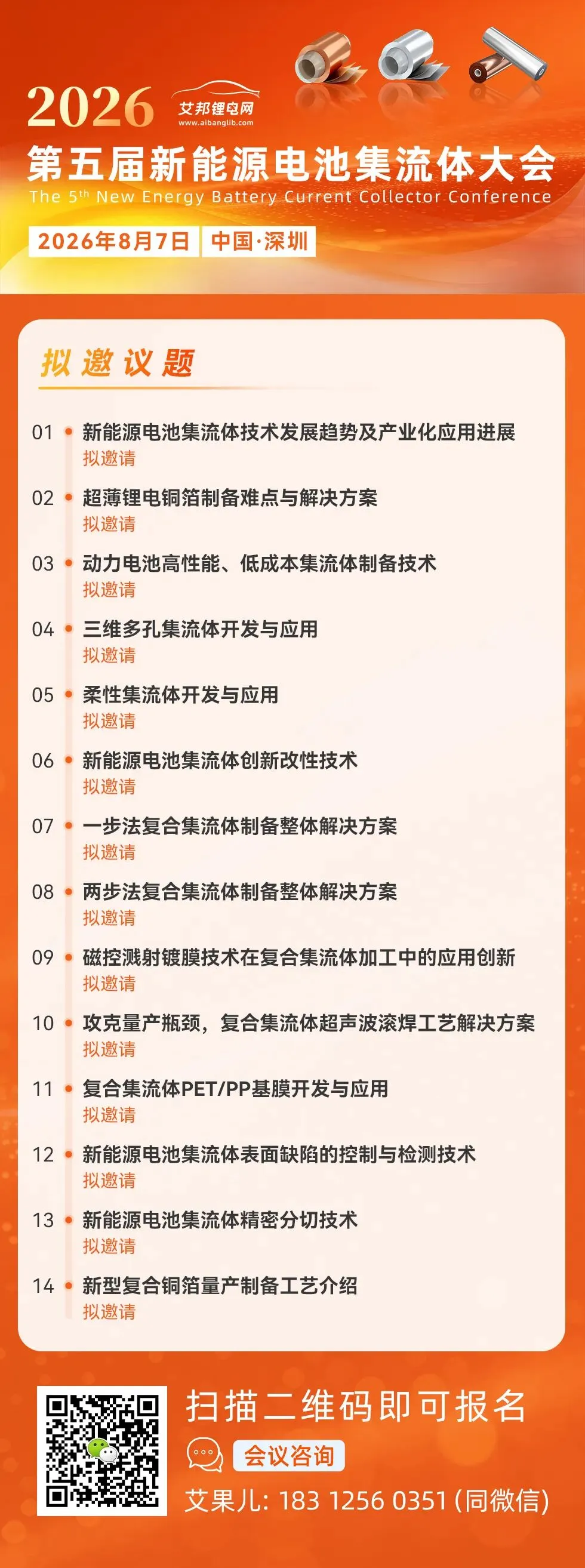活动推荐:【邀请函】第五届新能源电池集流体大会( 2026年8月7日深圳)
