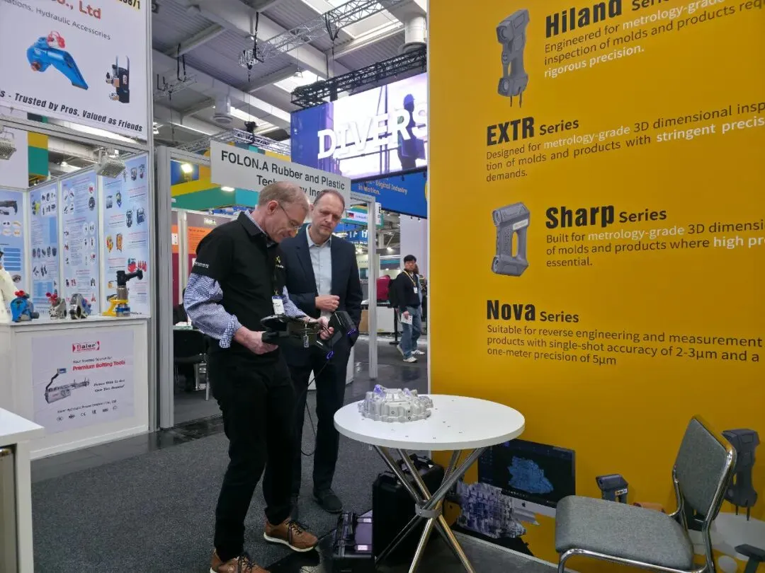 为了让观众更直观地了解三维视觉技术的实际表现,非白三维在展台设置了专门的动态演示区。演示过程中,工作人员手持扫描仪灵活移动,屏幕上同步生成清晰的实时数据模型。即使在现场复杂光线环境下,系统对高反光及深色物体的成像依然保持稳定。每一轮演示结束后,均吸引不少观众驻足拍摄与详细问询。